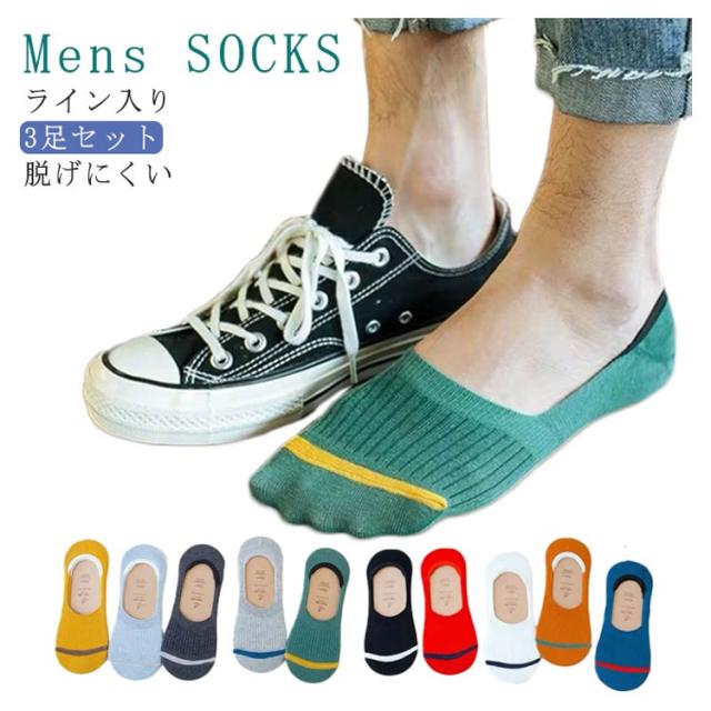 3足セット ライン入り 靴下 ソックス 脱げない スニーカーソックス メンズ フットカバーソックス カバーソックス 春夏 フットカバー 脱げにくい 滑り止め付き シンプル ベーシック スリッポン 靴下 ソックス 滑りとめ くるぶし ソックス 吸水速乾 防臭 送料無料