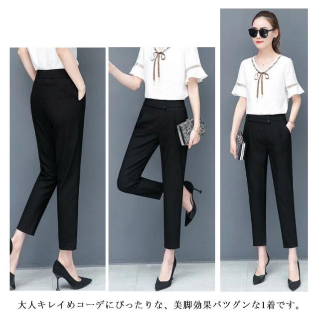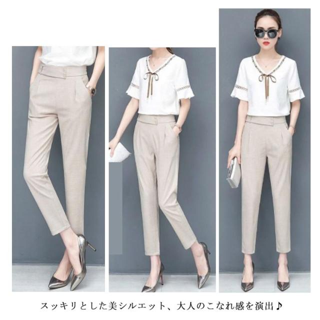 テーパードパンツ レディース スーツパンツ 春夏 ロングパンツ ボトムス ウエストゴム オフィス OL 着痩せ 大人カジュアル 20代 30代 40代 お洒落