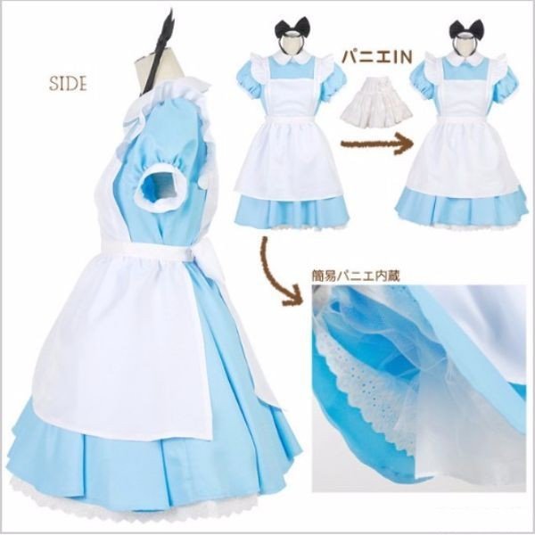 | サイズについての説明 | メイドコスプレ可愛いワンピースセットです!爽やかなブルーのワンピース、裾はレースが縫い付けられています。純白のエプロンと黒リボンのカチューシャを合わせればおとぎの国の女の子に♪ワンピースは背中のファスナーで着脱できます。お手持ちのパニエを合わせてスカートをふんわりさせるととても可愛いシルエットになります。イベントやパーティで大活躍☆『ハロウィン/ハロウイン』【ご注意】当店にて検品後に発送いたしますが、海外製品のため、若干のバリ、キズ、汚れがある場合がございます。予めご了承の上ご購入ください。●モニターや環境によって、実際の色味とは違う場合がございます。ご了承ください。 |