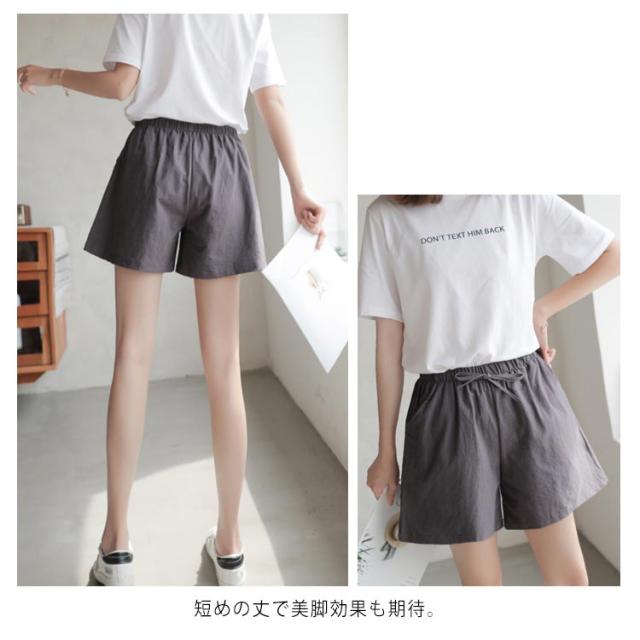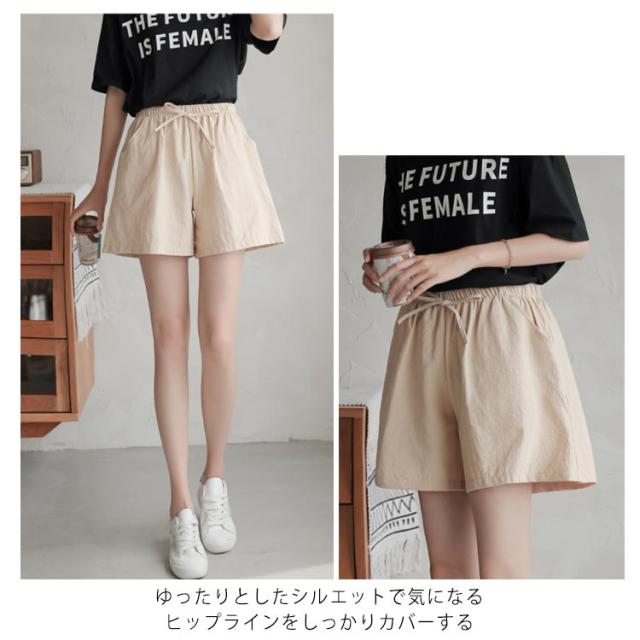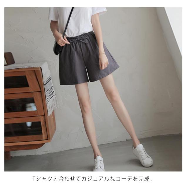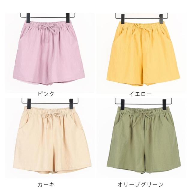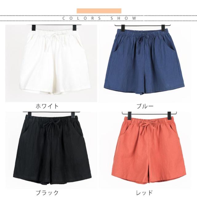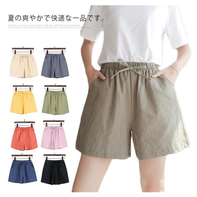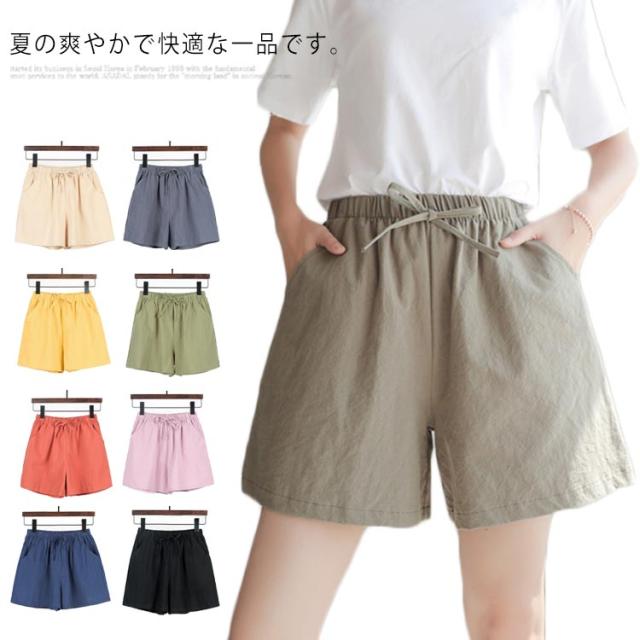 ショートパンツ レディース ワイドパンツ ボトムス 短パン 綿 麻 リネンパンツ ガウチョパンツ カジュアルパンツ 無地 ウエストゴム&紐 ポケット付き ショート丈 送料無料 薄手 爽やか 美脚 お洒落 楽チン 夏物 夏新作