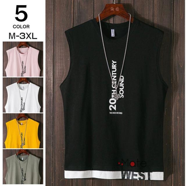 タンクトップ メンズ スポーツ トップス Tシャツ インナー ノースリーブTシャツ 英字 ダンス 夏