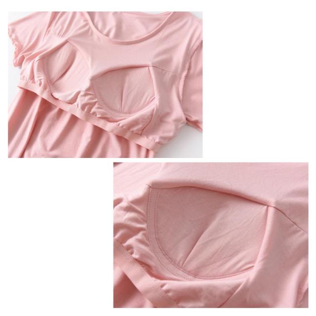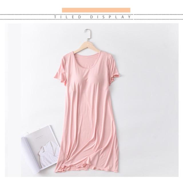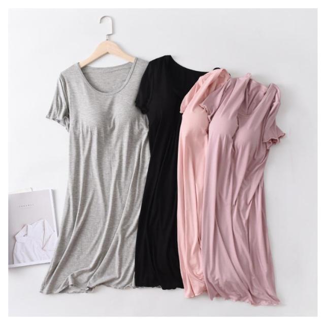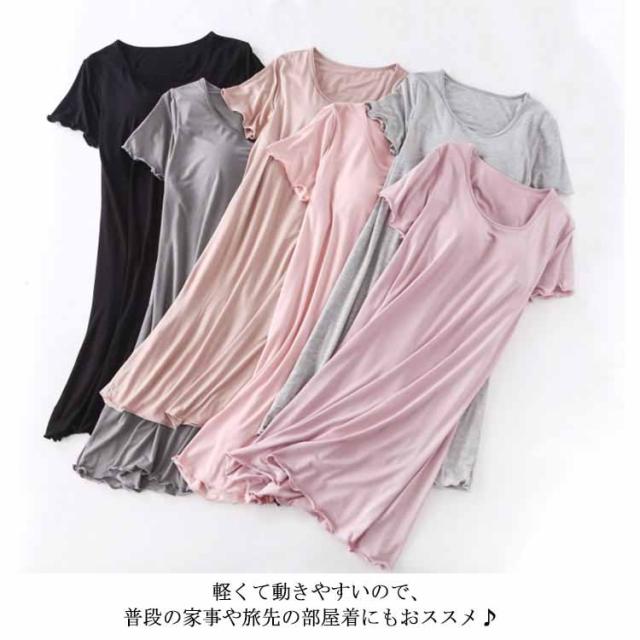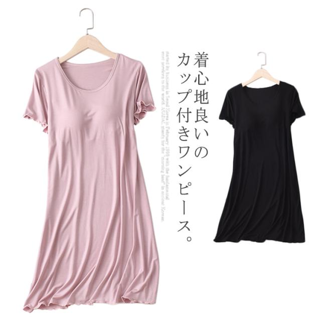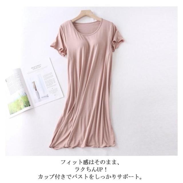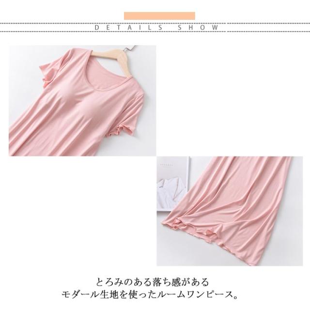 カップ付き ワンピース Tシャツワンピース モダール 胸パッドワンピース マキシ丈ワンピ 半袖tシャツ パジャマ ルームウェア 送料無料 ゆったり 体型カバー ロンT 大きいサイズ 無地 日常ウェア