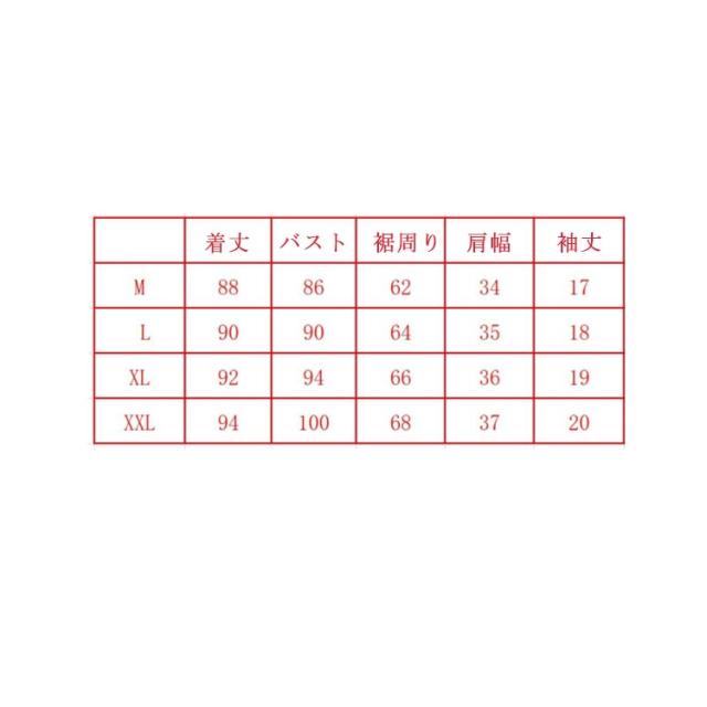 | サイズについての説明 | サイズ 着丈 バスト 裾 肩幅 袖丈M 88 86 62 34 17L 90 90 64 35 18XL 92 94 66 36 192XL 94 100 68 37 20※採寸方法の違いで、1-3cmの誤差が出る場合がございます。 |
