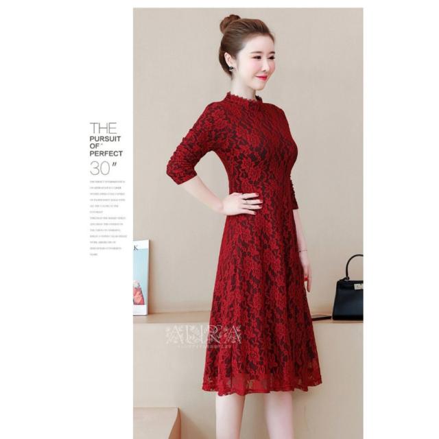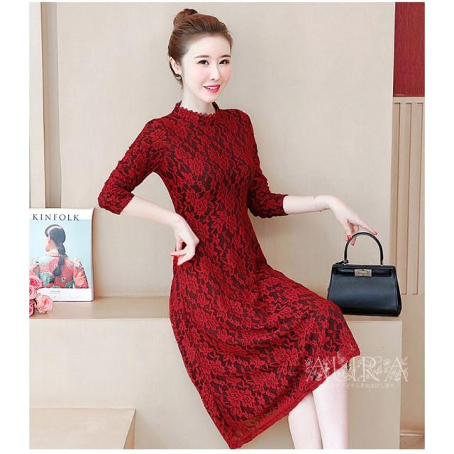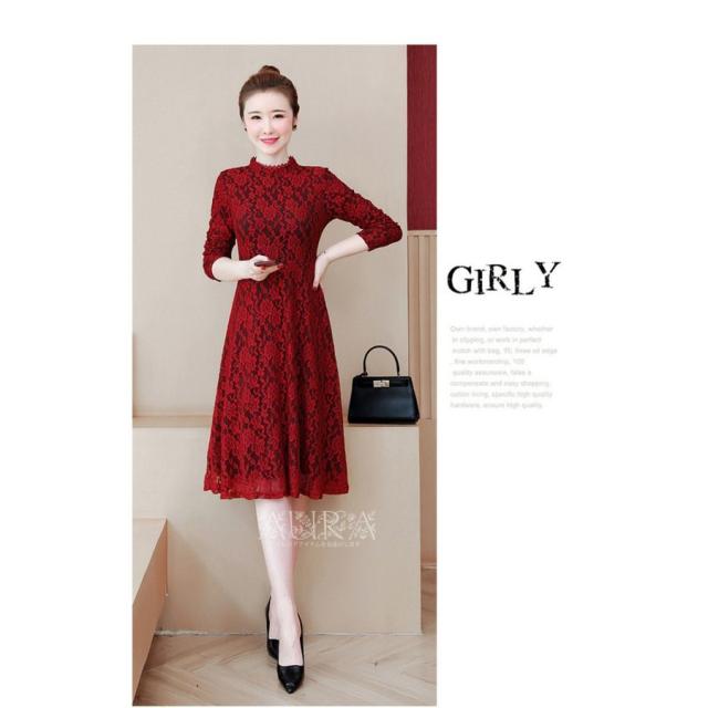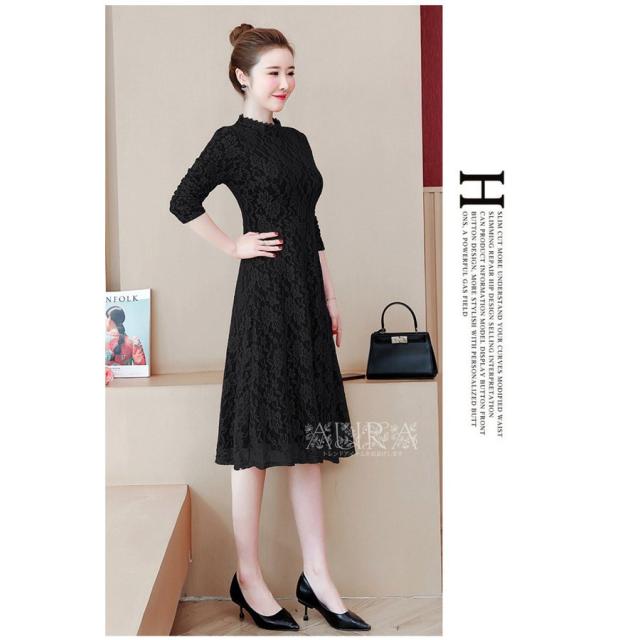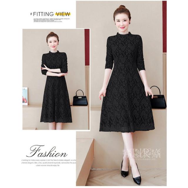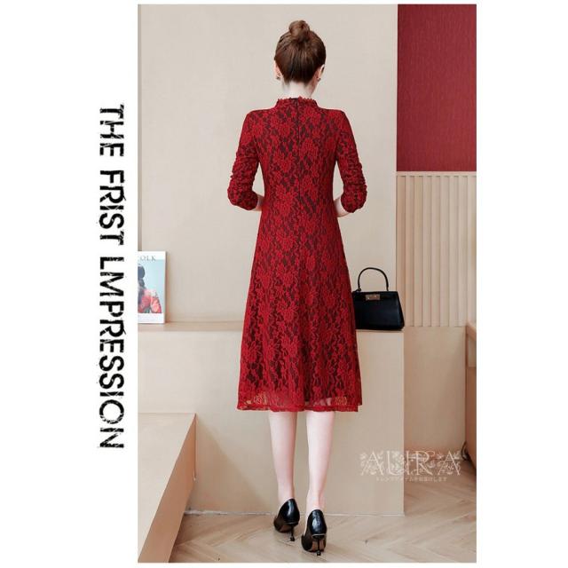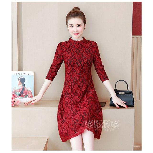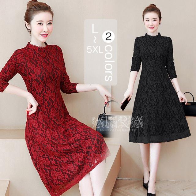 ワンピース レディース きれいめ 40代 秋冬 ワンピース 膝丈 長袖 裏起毛 レースワンピース 春 大きいサイズ ワンピース 上品 通勤 着痩せ 新品