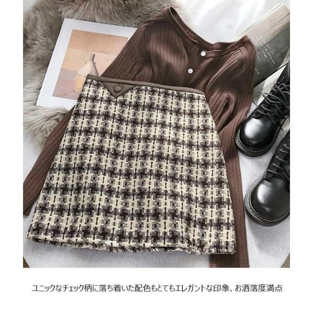 スカート 冬 ミニスカート チェック柄 タイトスカート レディース ショートスカート 厚手 ペンシルスカート 秋 チェック柄スカート レトロ