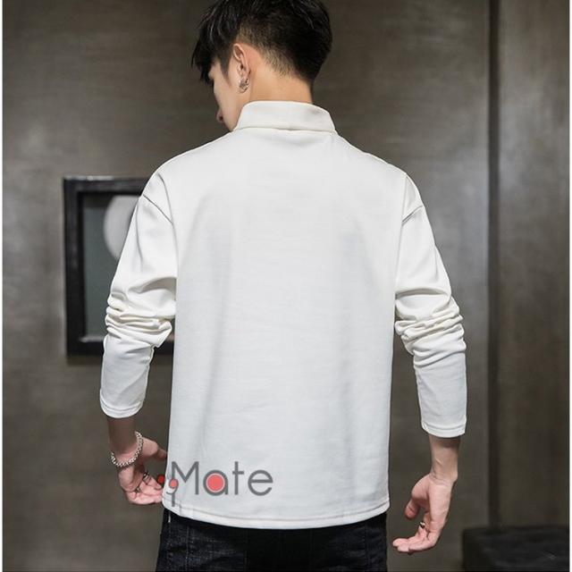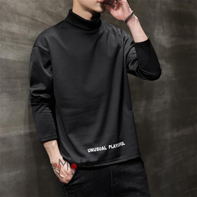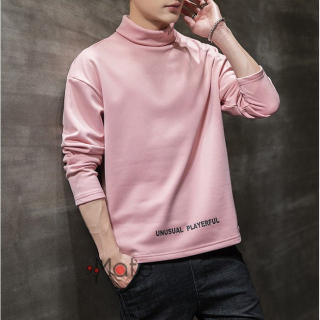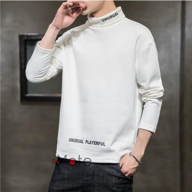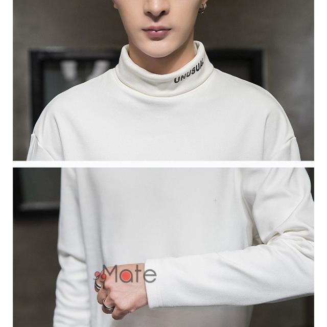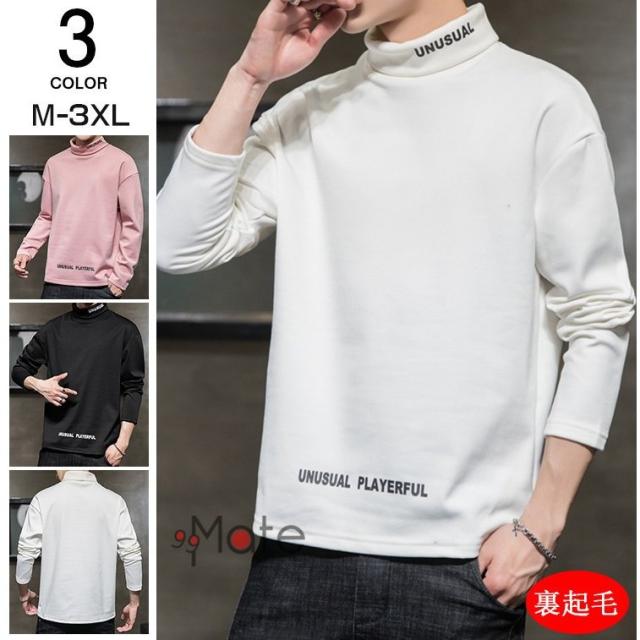 Tシャツ 長袖 メンズ 裏起毛 トップス ハイネック カジュアル メンズTシャツ ロンT 英字 無地