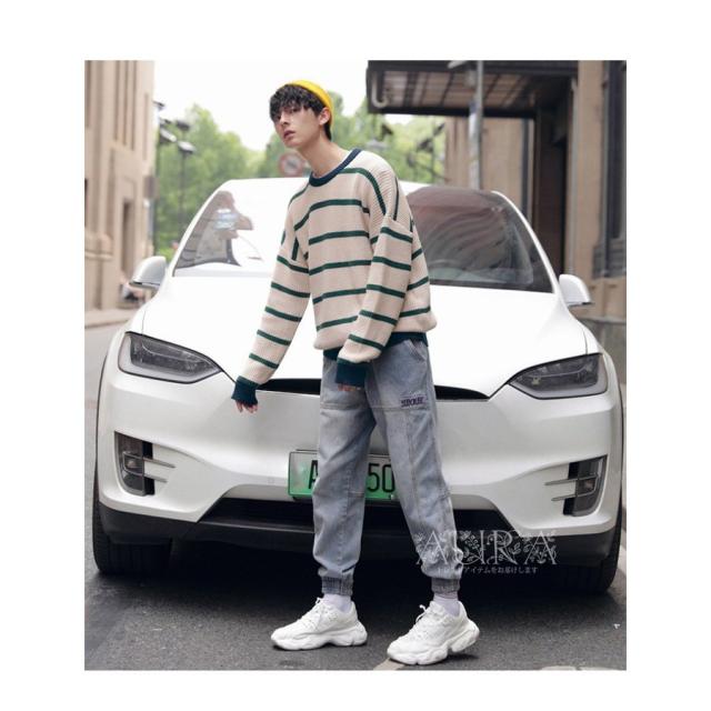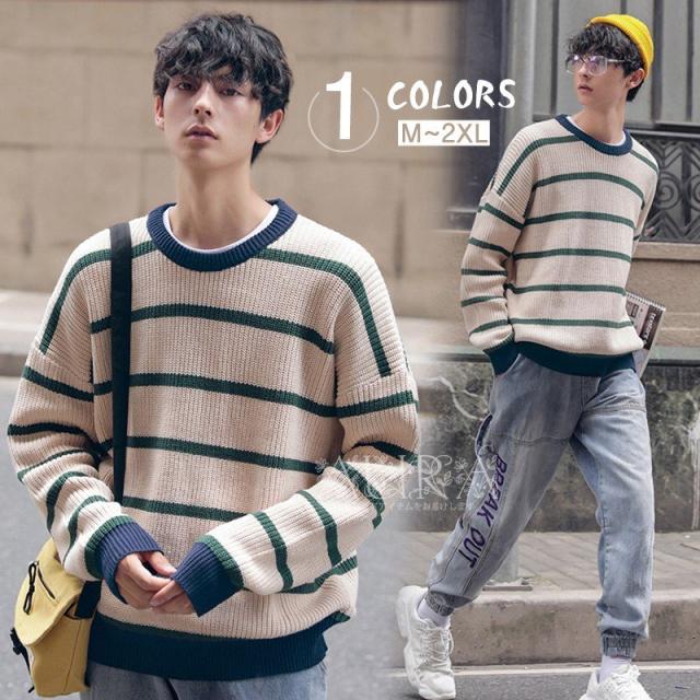 ニットセーター メンズ セーター 長袖 トップス 春秋冬 メンズ ニット 暖かい 韓国風 新作 ボーダー柄 カジュアル キレイめ オシャレ