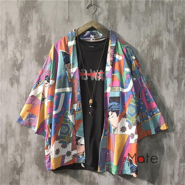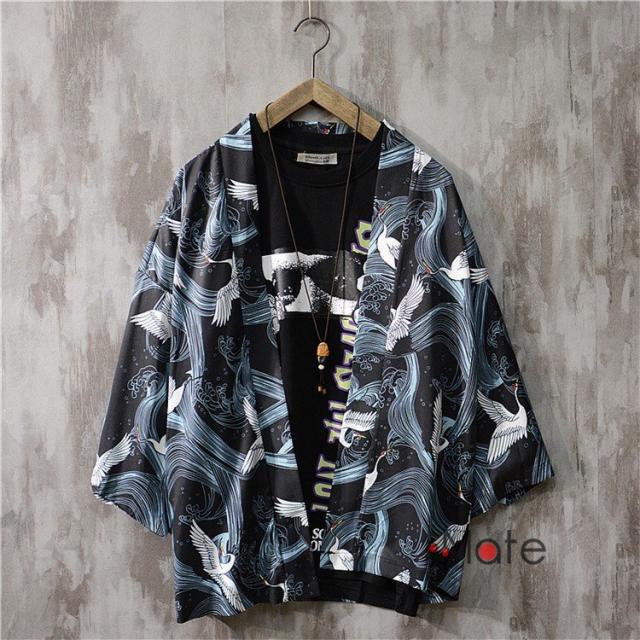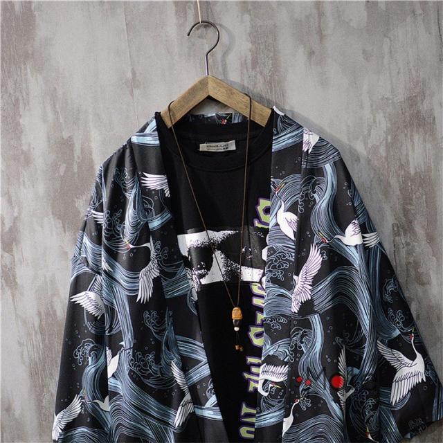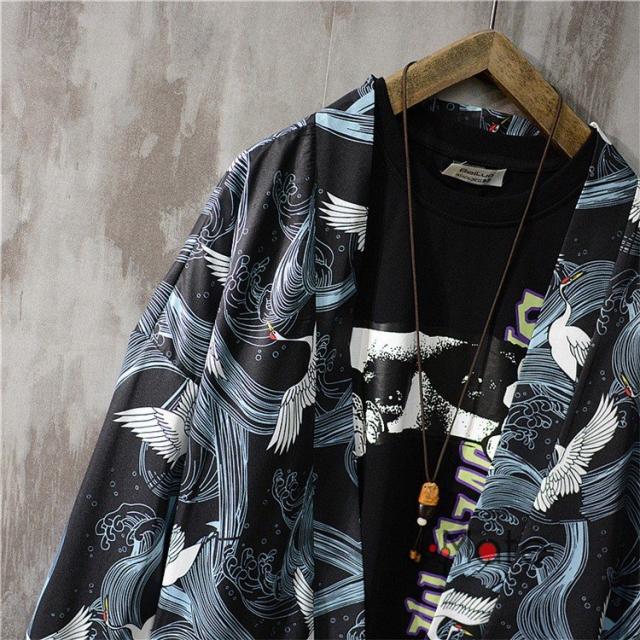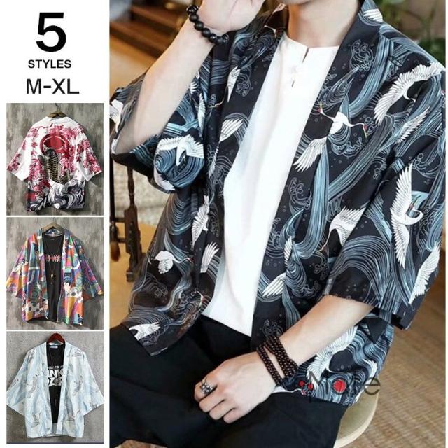 羽織 着物 メンズ 浴衣風 花柄 アウター 7分袖 甚平和式 カジュアル カーディガン 花火大会 お祭り 父の日