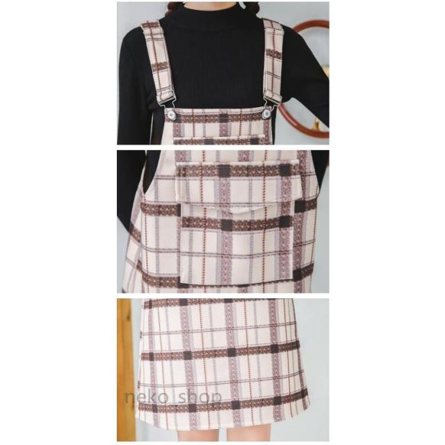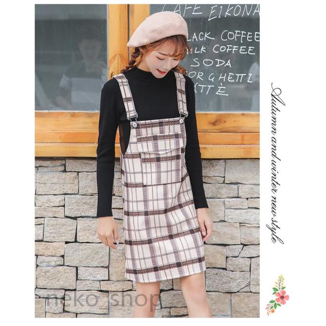大きいサイズ 大人/学生 サロペットスカート ジャンパースカート レディース 秋 冬 ラシャ チェック柄 膝丈ワンピース ゆったり ボトムス 韓国風 着痩せ