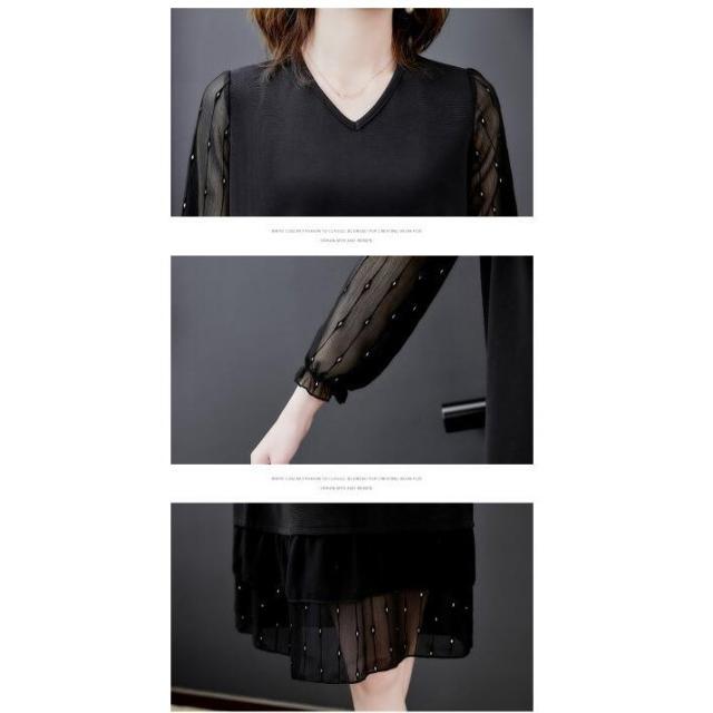 大きいサイズ ワンピース レディース ドレス 長袖 Vネック メッシュ 膝丈ワンピース ゆったり 体型カバー 女性 セクシー 20代 30代 40代 通勤 お出かけ
