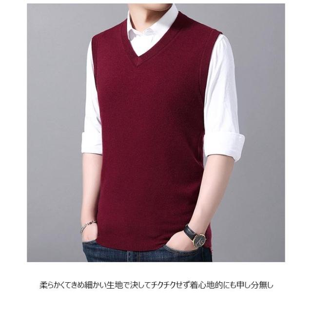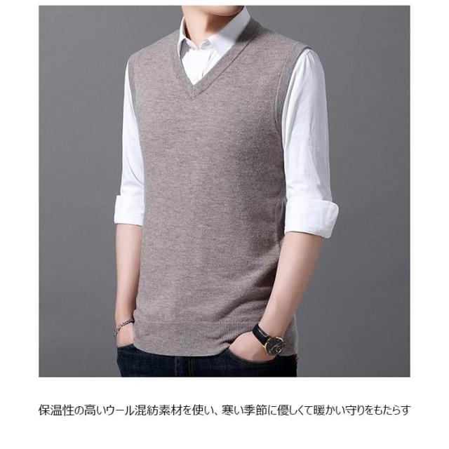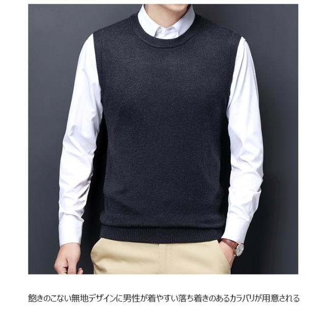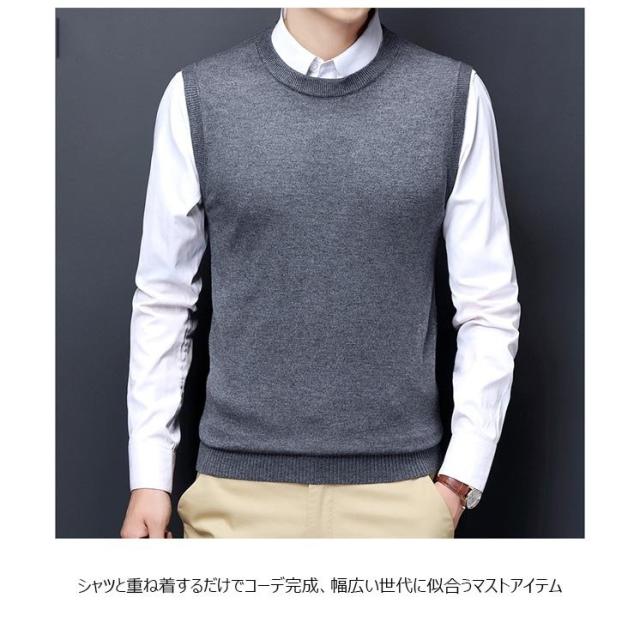 ニットベスト メンズ ベスト ウール混 ジレベスト Vネック プルオーバー ジレ ニット メンズベスト 40代 ウールベスト 50代 ラウンドネック