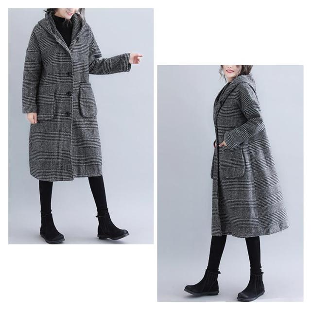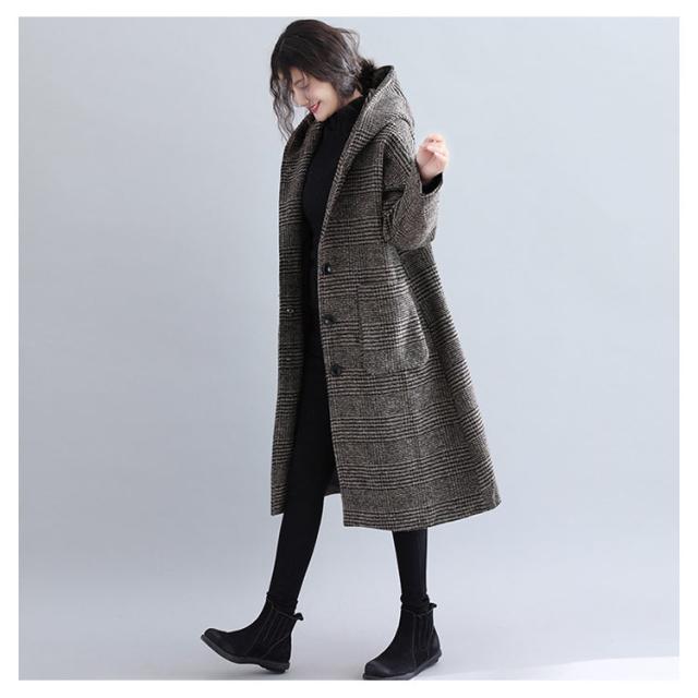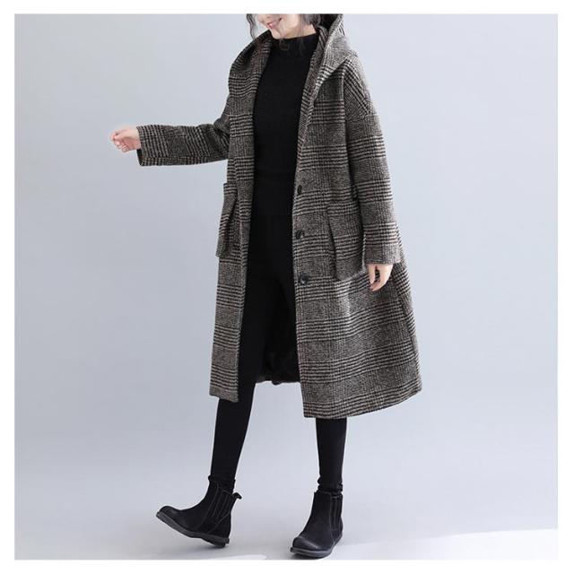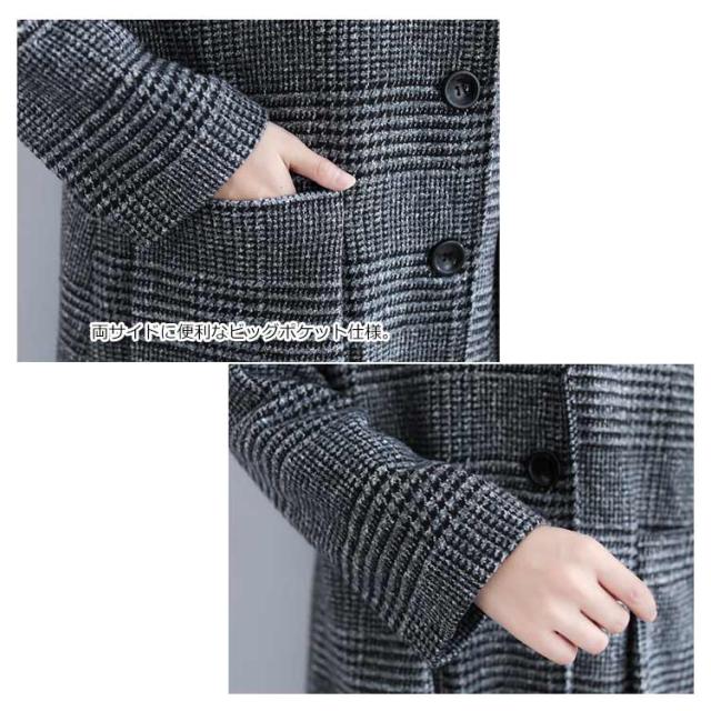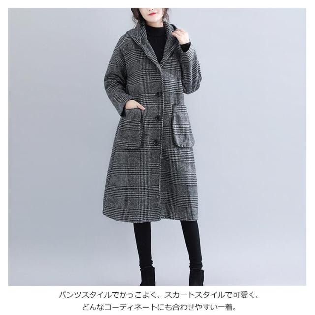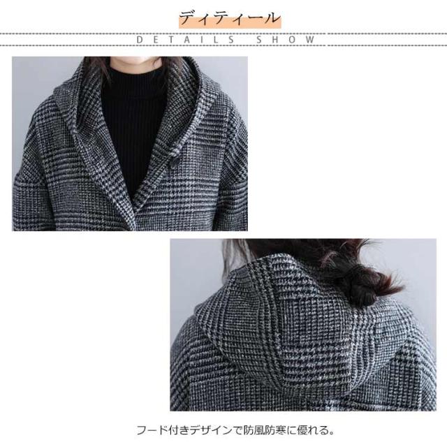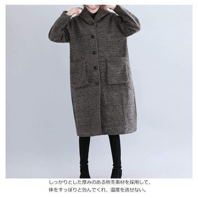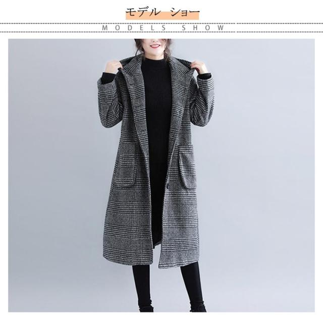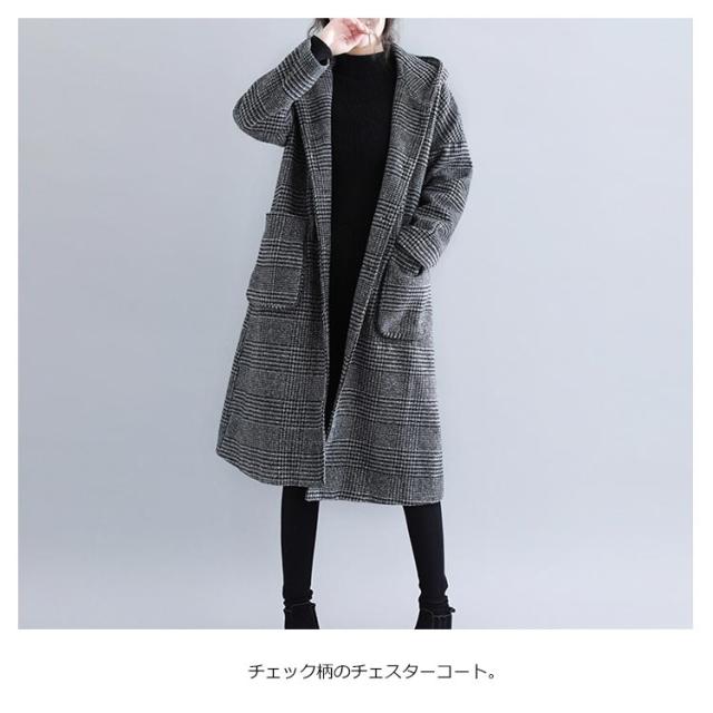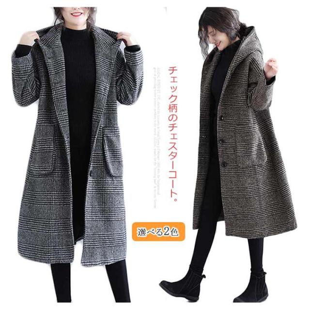 チェスターコート レディース アウター コート チェック柄コート チェック柄 ロングジャケット 体型カバー マキシ 膝丈 ロング丈 上着 着痩せ フード付き ゆったり 秋 冬 通勤 カジュアル 着回し力