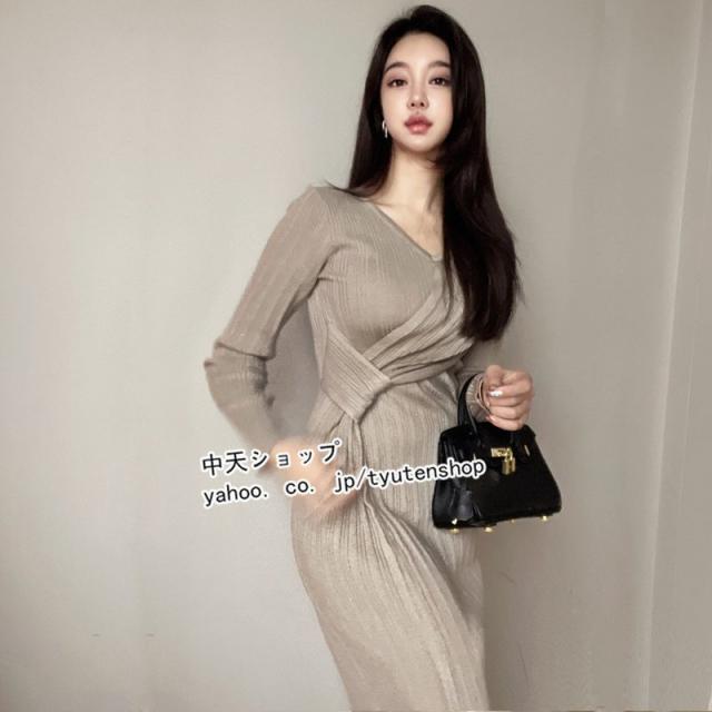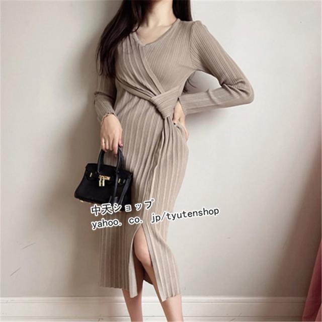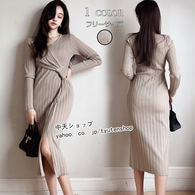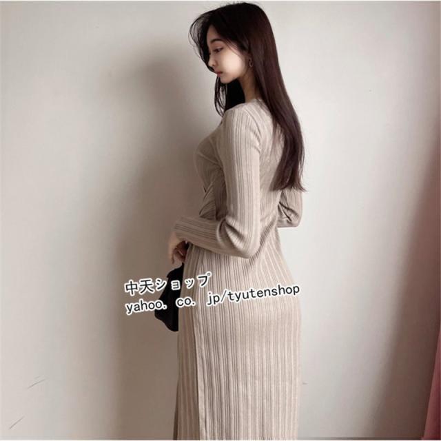 ニットワンピース タイトワンピース レディース 膝丈ワンピース お呼ばれワンピース セクシー 長袖ワンピース スリット きれいめ フェミニン 20代~40代 春