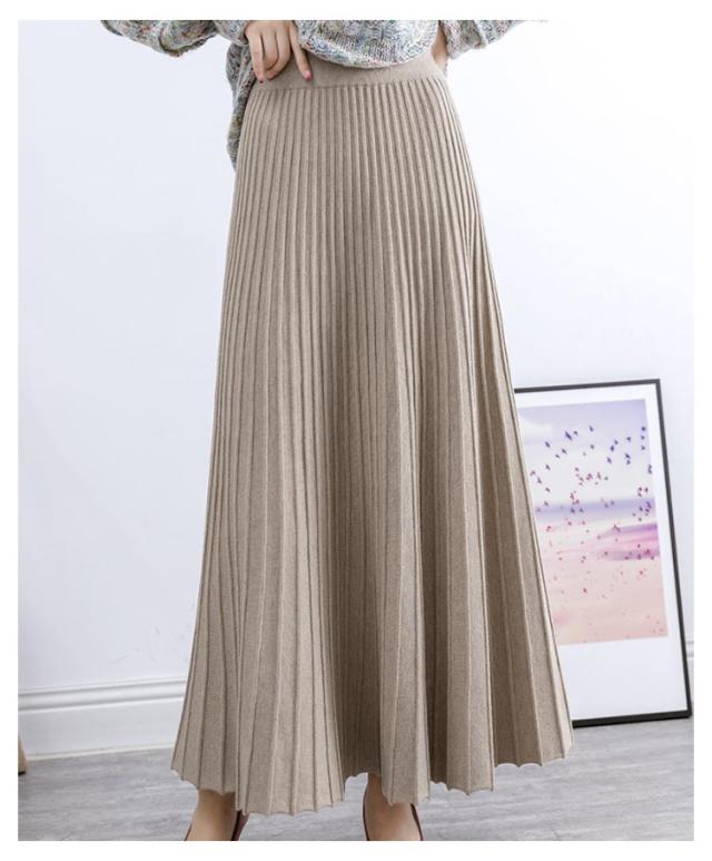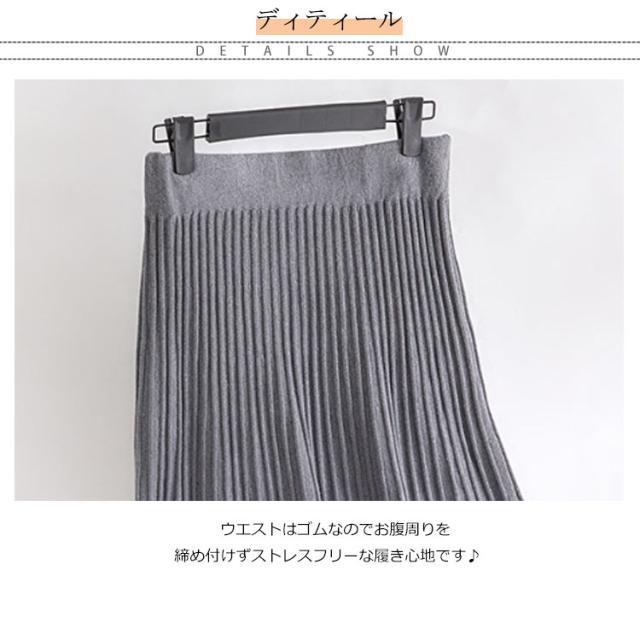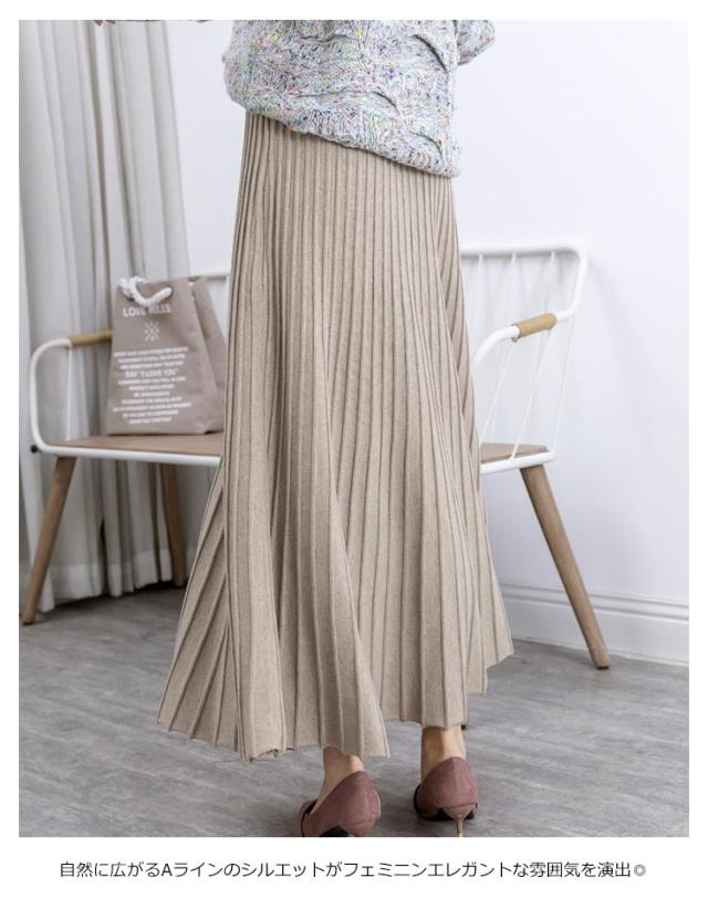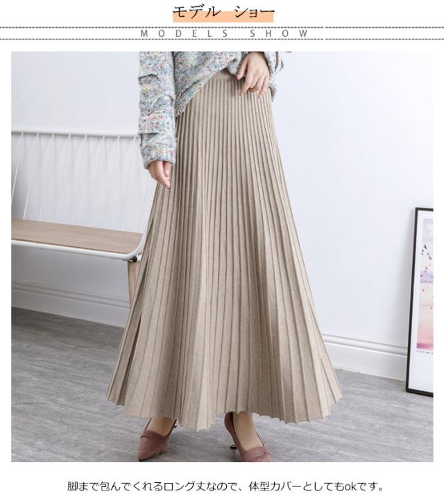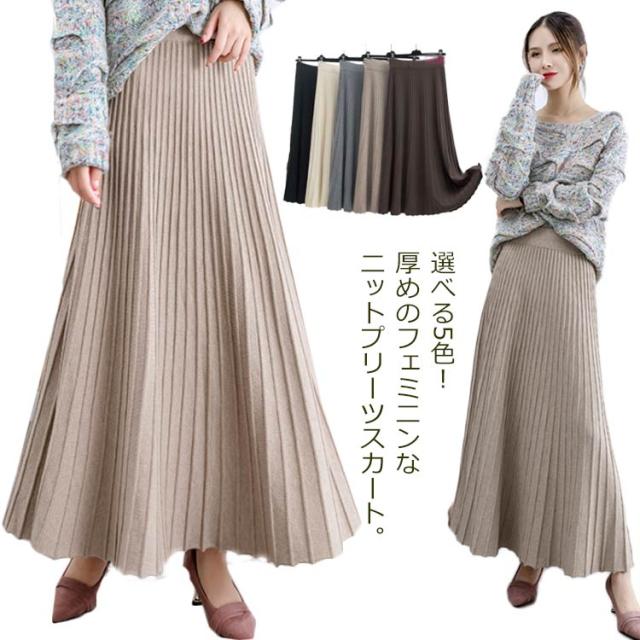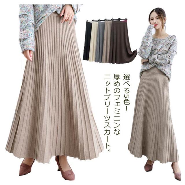 ニットスカート レディース プリーツスカート ロングスカート 秋 冬 ボトムス ニット ロング丈 マキシ丈 ウエストゴム Aライン ニットプリーツスカート 厚手 上品 大人かわいい おしゃれ フェミニン 大きいサイズ 通勤
