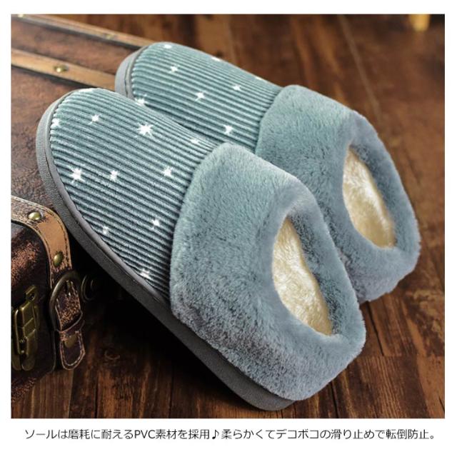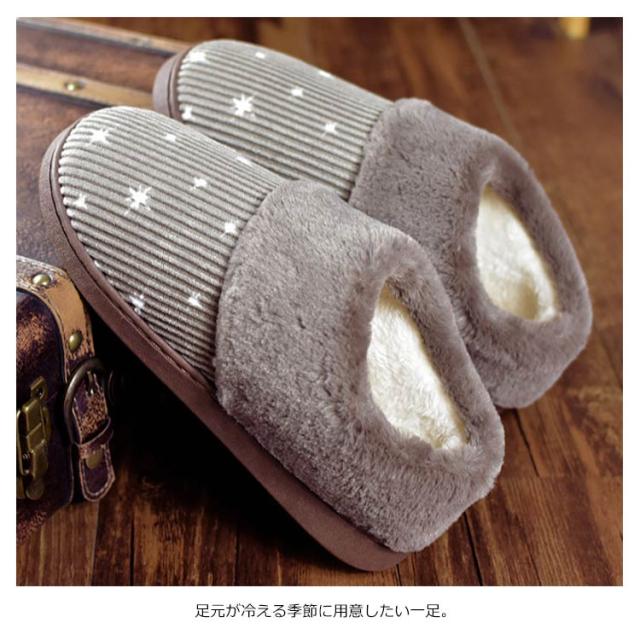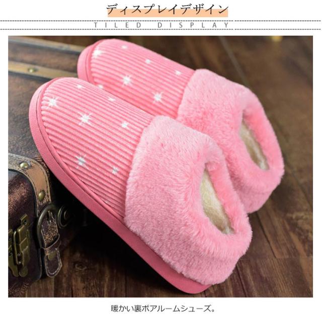 | 暖かい裏ボアルームシューズ。 裏ボアなので肌触り抜群! かかとが有ありタイプで全足を包んでくれて保温性抜群。 ソールは磨耗に耐えるPVC素材を採用♪柔らかくてデコボコの滑り止めで転倒防止。 足元が冷える季節に用意したい一足 ※厚手の裏ボアタイプなので、普段より二つ上のサイズをお勧めいたします。 | |