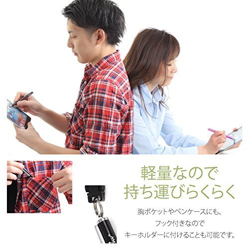 | サイズについての説明 | 【濃密導電ファイバー】 ゴム製と比較して滑りと反応が格段に良く、操作性・耐久性に優れたタッチペンです。 iPad等のタブレットPCでお客様へサインいただく事が多くなってきた昨今、お客様がスムーズにサイン頂けるとの声を多くいただいております。 また、簡単なメモやお絵描きにも多くご利用頂いております。(注:ペン先が太めですので細かなメモや繊細なお絵描きには適しておりません) 個人のお客様はもちろん、大手フィットネスクラブ様、学習塾様、電力会社様、百貨店様等多くのお客様にご利用頂いております。Switch本体やPSVitaなどのゲーム機にも対応。 さらに、摩擦が少ないので、ツムツムやパズドラなどのゲームに、またバンドリ等の音ゲーにも最適です。【エコなペン先】ペン先は交換式になっております。ネジ |