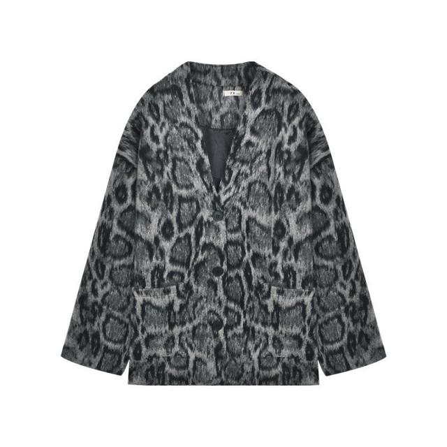 レディース チェスターコート ラシャコート レオパード柄 Vネック 長袖 ジャケット 大きい 韓国風 ゆったり 体型カバー 女性用 着痩せ 30代 秋冬新作