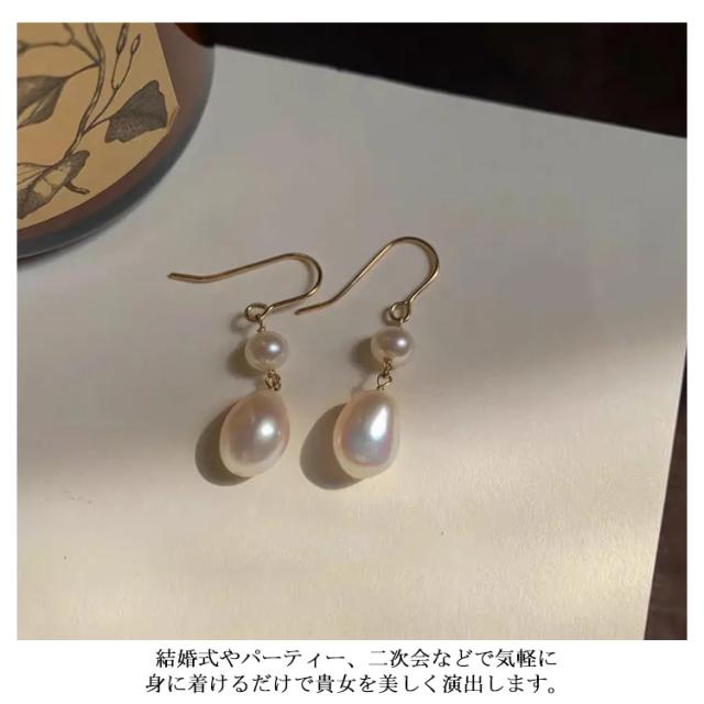 パールピアス ドロップピアス 2重 イヤリング フックピアス 揺れる フック ゴールド シンプル アクセサリー 結婚式 上品 華奢 おしゃれ プレゼント 女性 大人