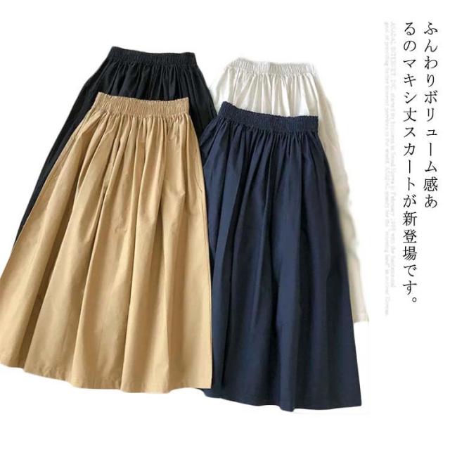 ロングスカート レディース Aライン ウエストゴム フレアスカート 体型カバー マキシ丈 ボトムス 通勤 キレイめ 楽ちん 韓国風 無地 カジュアル お洒落 シンプル 送料無料