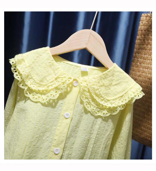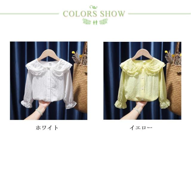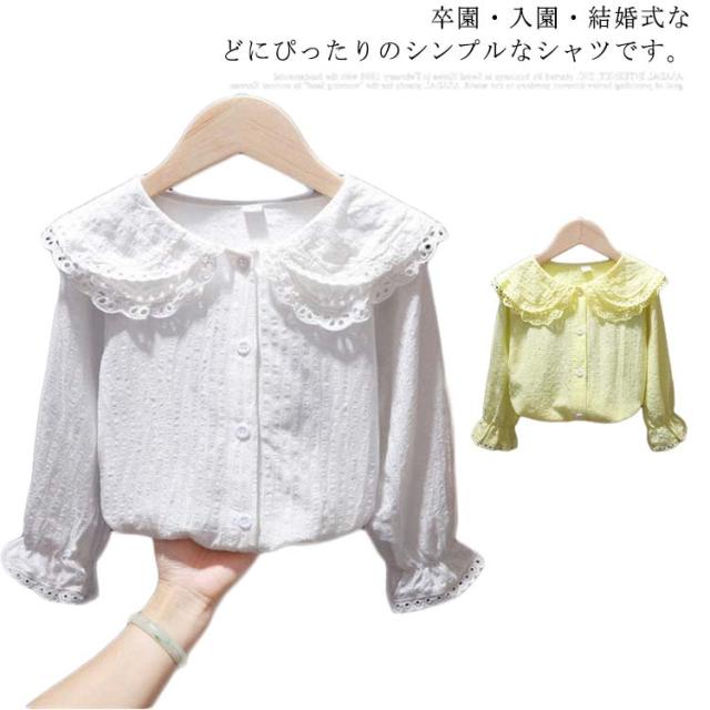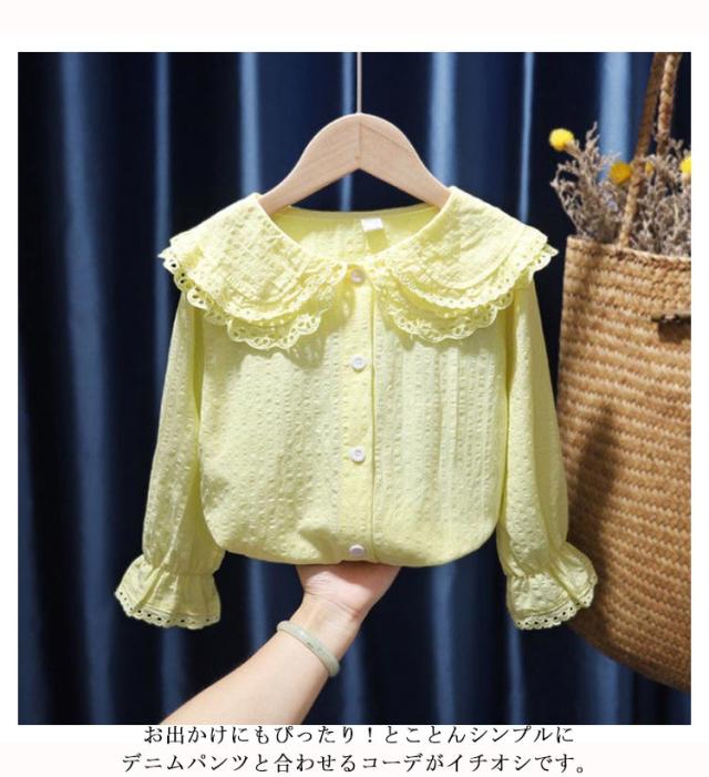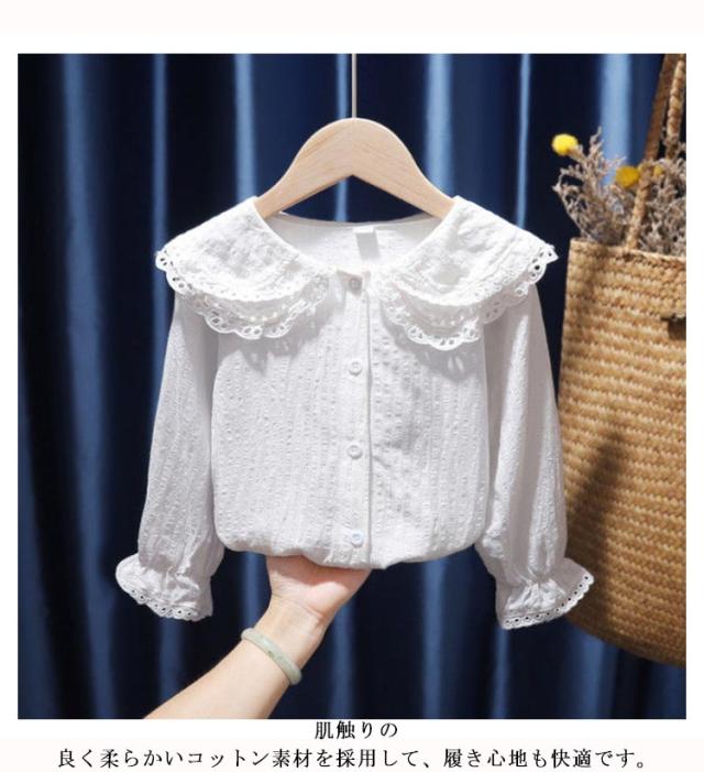 ボタンシャツ ガールズ 長袖 女の子 シャツ 女児 丸衿 トップス 子供服 ブラウス 可愛い 通園 通学 カジュアル リボン 卒業式 フォマール 入園式 入学式 送料無料