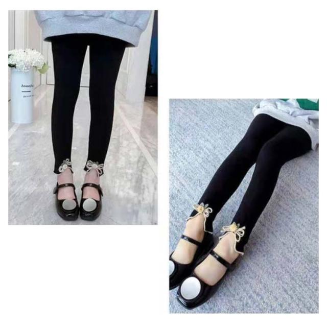 キッズ レギンス ロングパンツ スリット入り リボン インナーパンツ コットン スタイル インナーウエア ベビー服 春秋 ウエストゴム 送料無料 シンプル カジュアル オシャレ ボトムス 子供ウエア ナチュラル 普段着