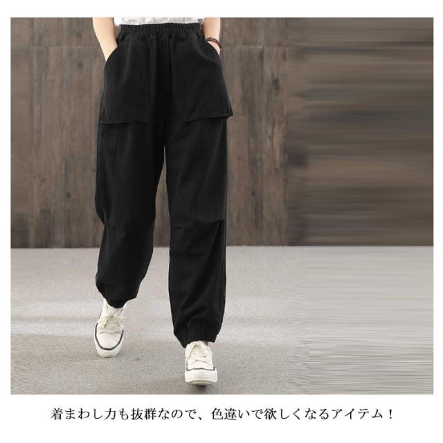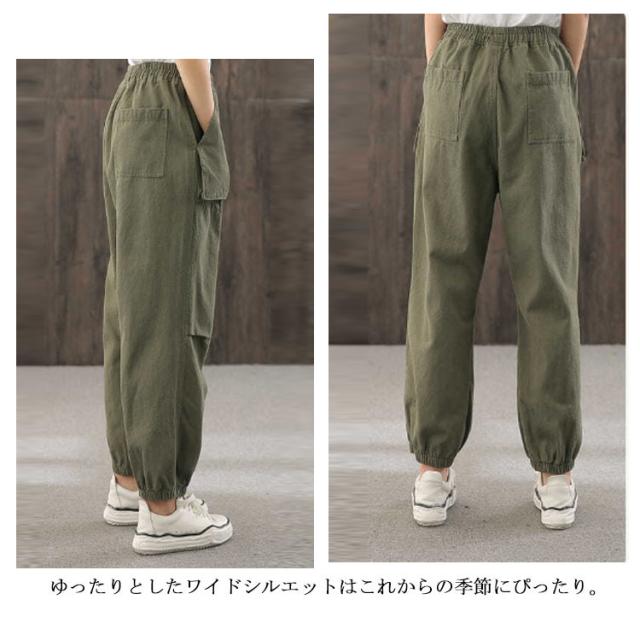 ボトムス パンツ テーパード レディース 長ズボン 秋 コットン リラックスパンツ イージーパンツ ブラック ベージュ カーキ ダークベージュ ゆる ナチュラル カジュアル 部屋着 ルームウェア ダンス 衣装 オシャレ