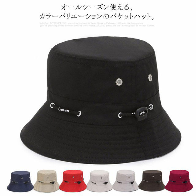 【送料無料】バケットハット メンズ 帽子 レディース ハット 小顔効果 おしゃれ アウトドア キャンプ 紐 調整できる レディースハット メンズハット 無地 ブラック レッド ベージュ グレー