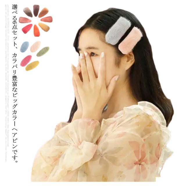 | 選べる6点セット、カラバリ豊富なビッグカラーヘアピンです。 秋冬の印象が与えられた、ふわふわの素材で、女性らしさUP! 大きめのサイズ感と淡い色合いで、カジュアルコーデの差し色にGOOD。 これひとつプラスするだけで即旬顔になれる今季マストアイテムです。 | |