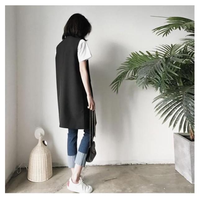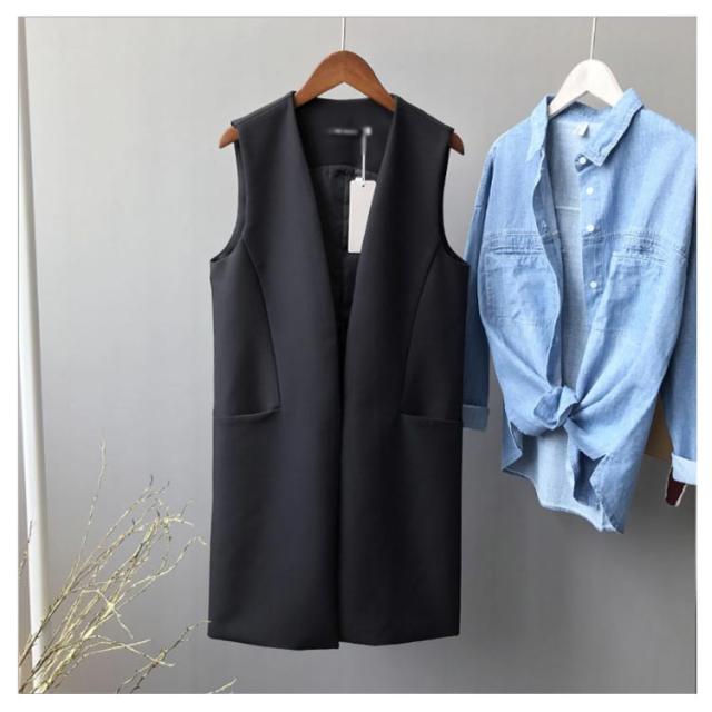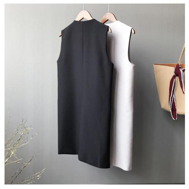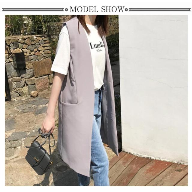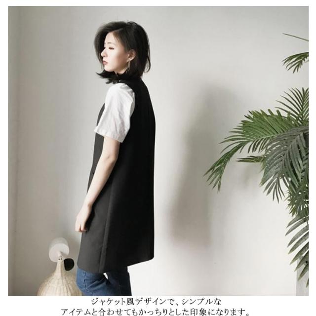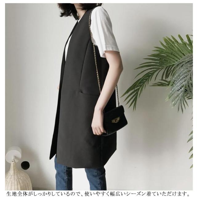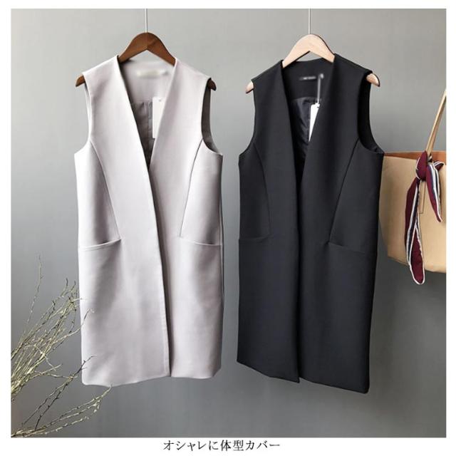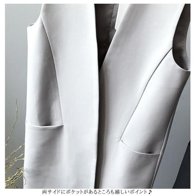 前開き ジレベスト ロング丈 ノースリーブコート レディース ノースリーブ トップス ノースリーブジャケット 重ね着 オフィス ロングジャケット 体型カバー カジュアル 春 秋 羽織 着痩せ ポケット付き 大人 スリム 無地 お出かけ