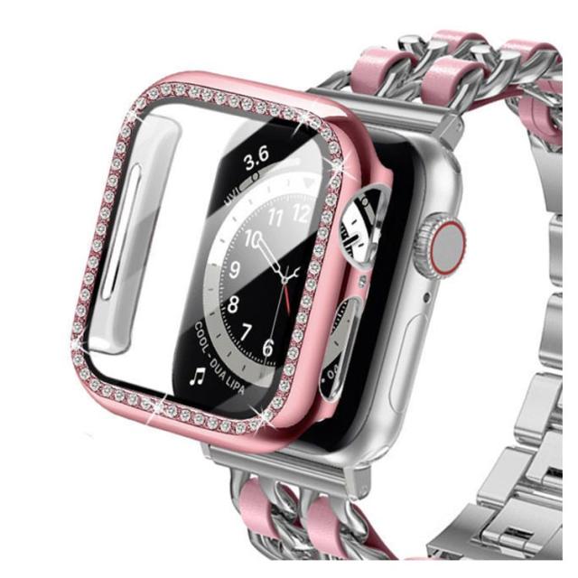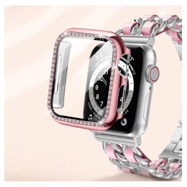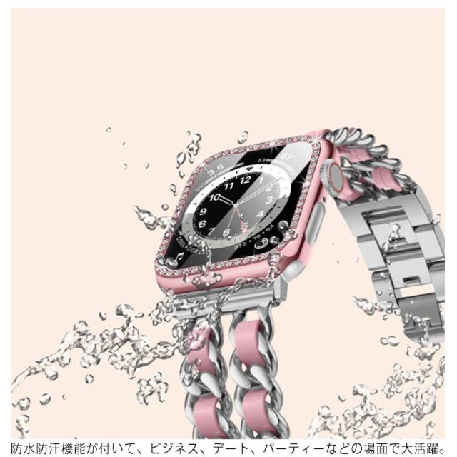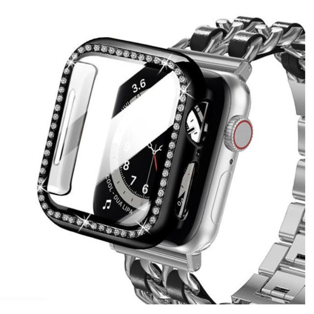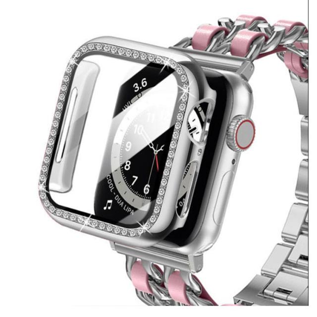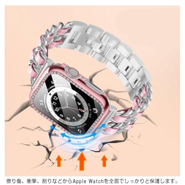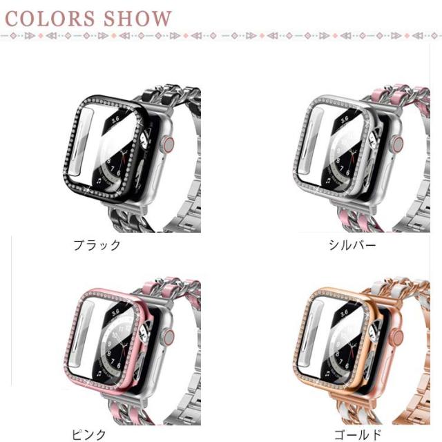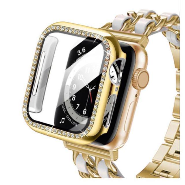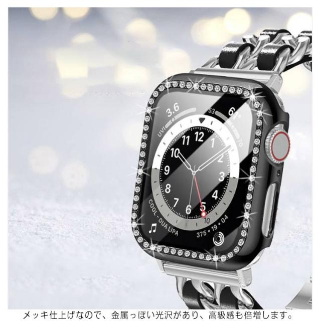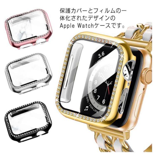 Apple Watch SE 6 5 4 3 2 1 カバー キラキラ 全面保護 アップルウォッチ ストーン ガラスフィルム 液晶保護 メッキ 保護ケース 38mm 40mm 42mm 44mm フレーム 耐衝撃 傷防止 クリア おしゃれ レディース 送料無料