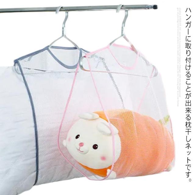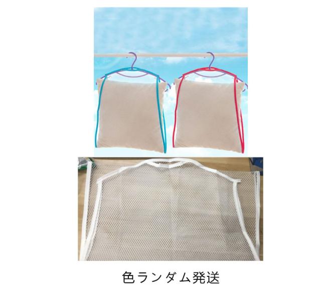 枕干しネット 2枚セット 物干しネット 取り付けタイプ メッシュ まくら クッション ぬいぐるみ 座布団 靴 洗濯 乾燥 ハンガー 吊り下げ式 省スペース 通気性 軽量 47×57cm 送料無料