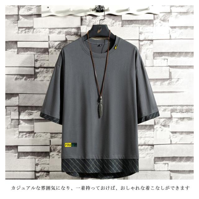 | ルーズな半袖、ワンポイントのTシャツ! 綿素材なので、肌にやさしくて、吸汗性も優れており、爽やかな着心地。 カジュアルな雰囲気になり、一着持っておけば、おしゃれな着こなしができます。 重ね着のインナーシャツとしても大活躍! 袖と裾部分がチェックを入りはポイント、シンプルながら、スタイリッシュな一枚です。 | |