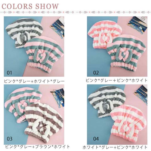 ヘアキャップ 2枚セット ヘアタオル タオルキャップ ヘアドライタオル ヘアバンド 吸水 リボン 厚手 ドライヤー前 送料無料 可愛い 吸水タオル シャワーキャップ 吸水速乾 お風呂上がり レディース 髪 大人 子供 梅雨 湿気対策