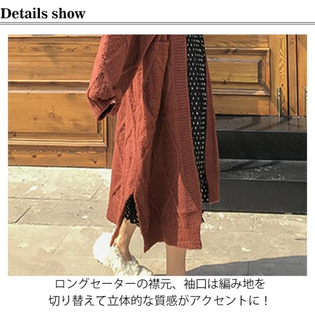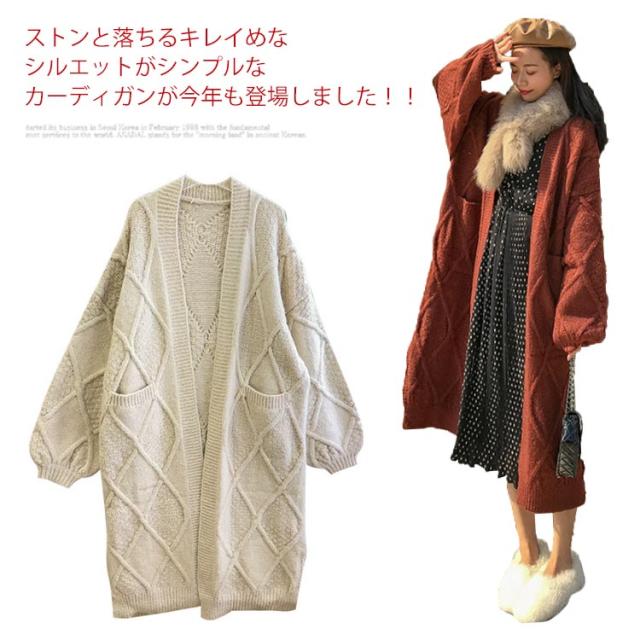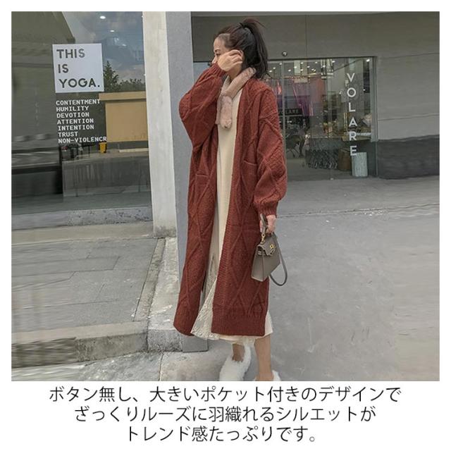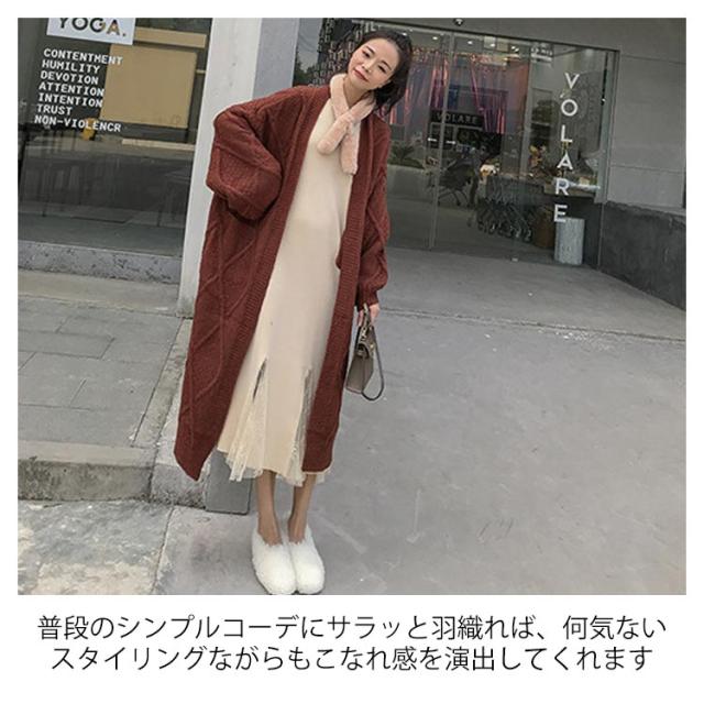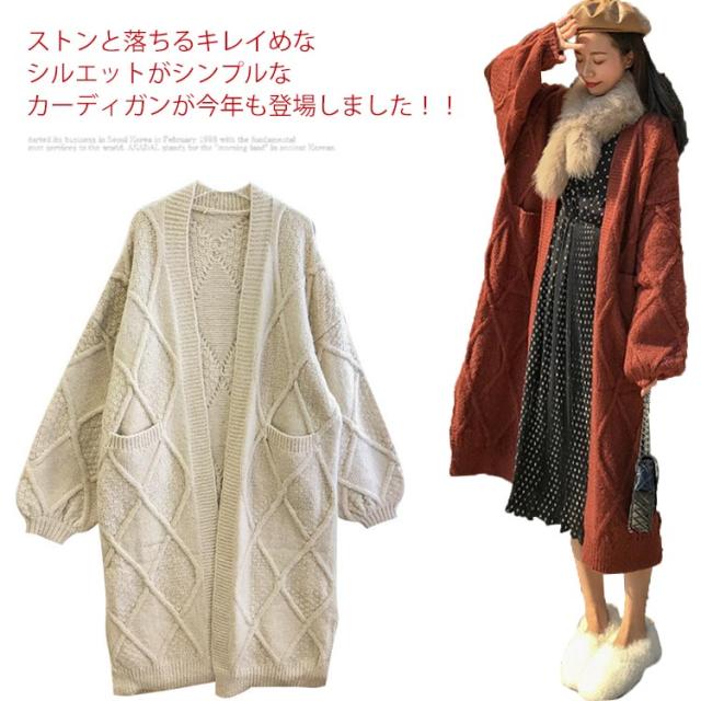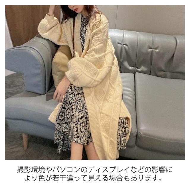 ニットカーディガン レディース 厚手 冬 ロング 秋冬 ゆったり 白 コーデ セーター ケーブル 長袖 リブ編み マキシ丈 前開き カジュアル 体型カバー 羽織