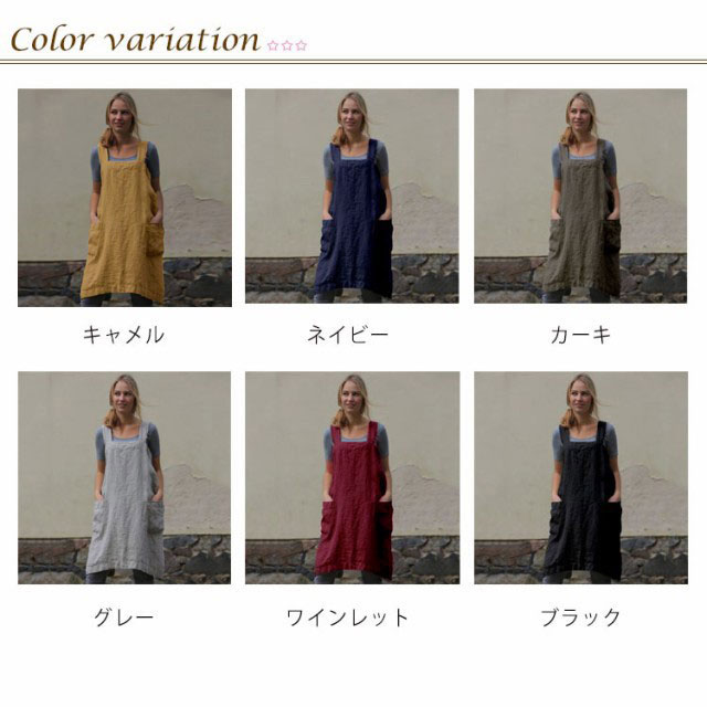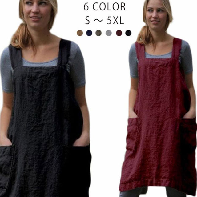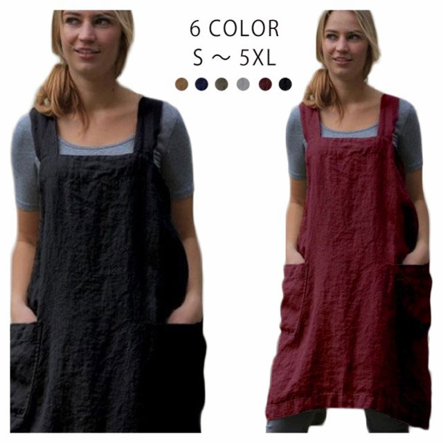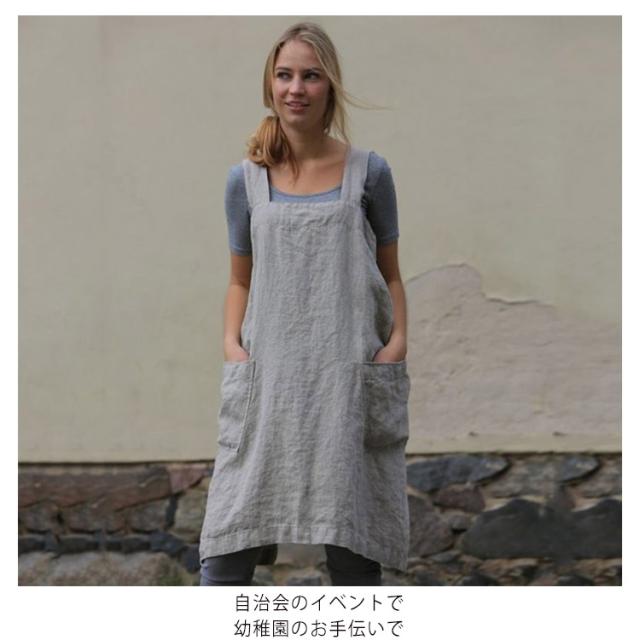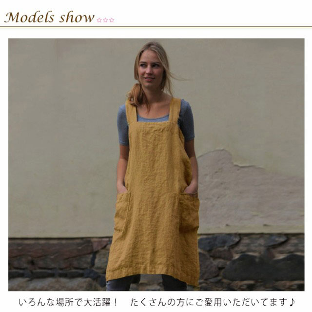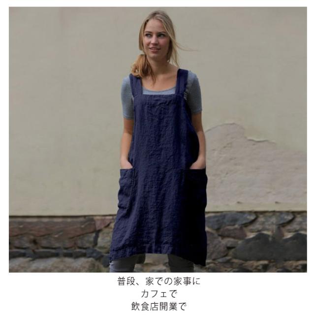 エプロン H型 ゆったり 無地 保育士 ワンピース カフェエプロン 綿麻 リネン コットン 仕事用 かぶり かぶる おしゃれ 北欧 かわいい ナチュラル レディース ショート丈 大人 割烹着 シンプル 母の日 無地