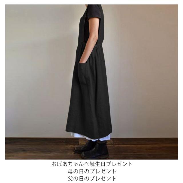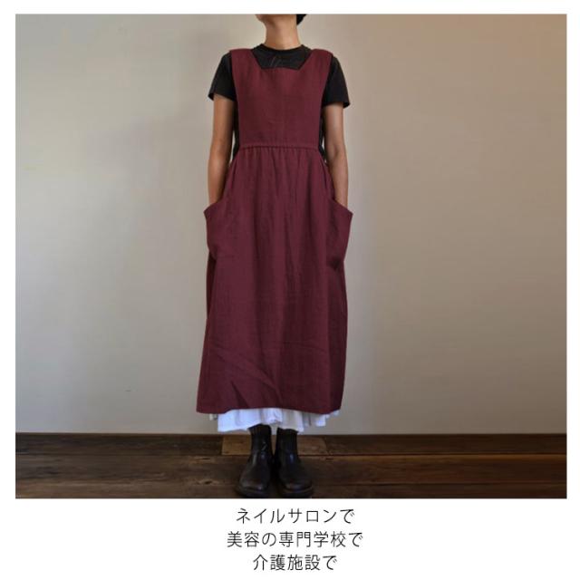 エプロン H型 ゆったり 無地 保育士 ワンピース カフェエプロン H型 サイドポケット 被りエプロン かぶり かぶる 綿麻 リネン コットン 女性 主婦 OL ガールズ サロン ポケット シンプル ナチュラル