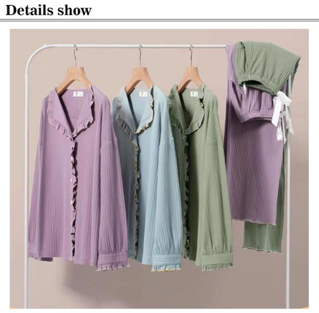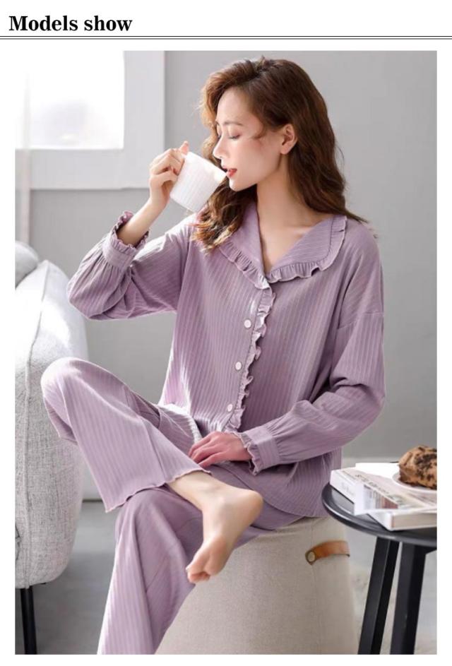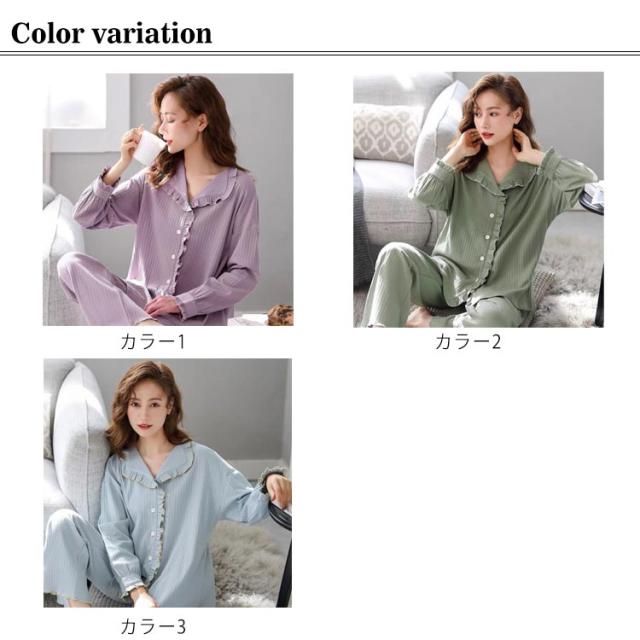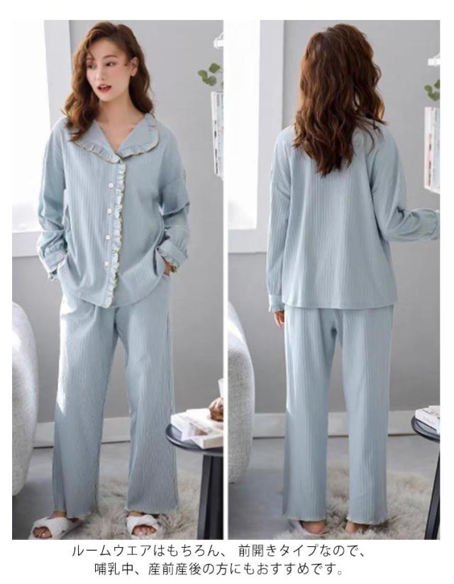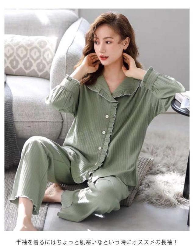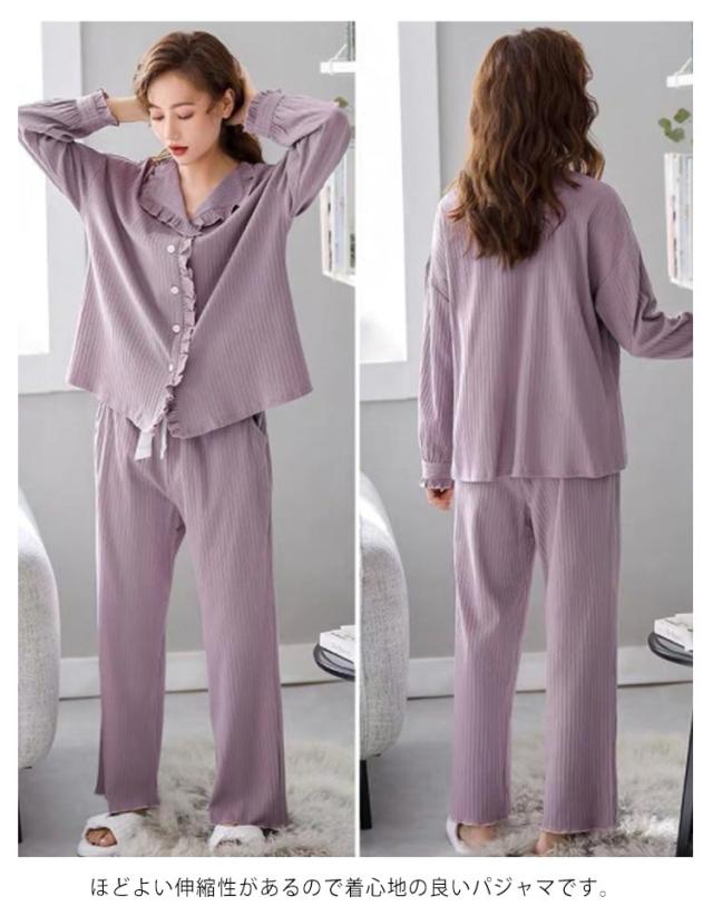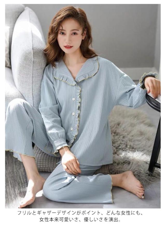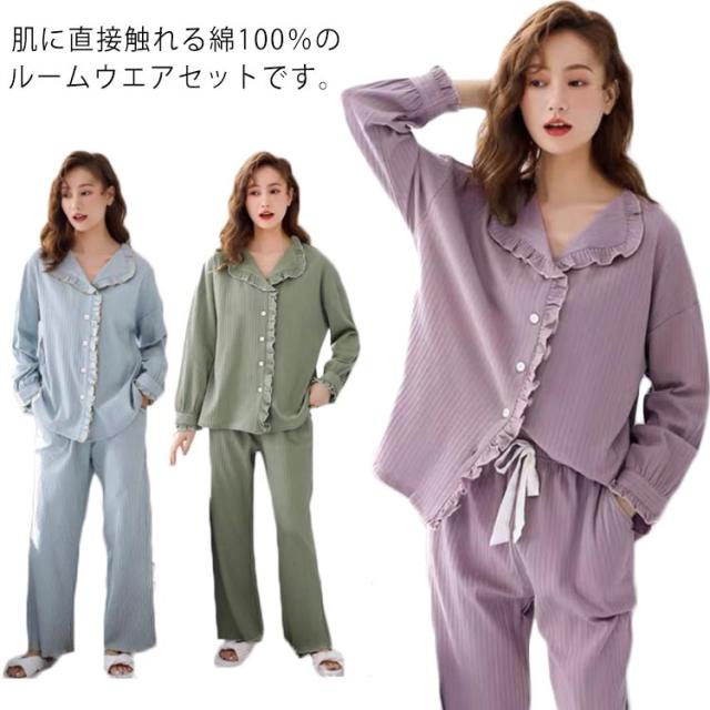綿100% ルームウェア かわいい レディース 長袖 セットアップ パジャマ 部屋着 ロングパンツ ウエストゴム 無地 快適 通気性 柔らかい 前開き 大人可愛い プレゼント 春 夏 秋 冬 オールシーズン 送料無料