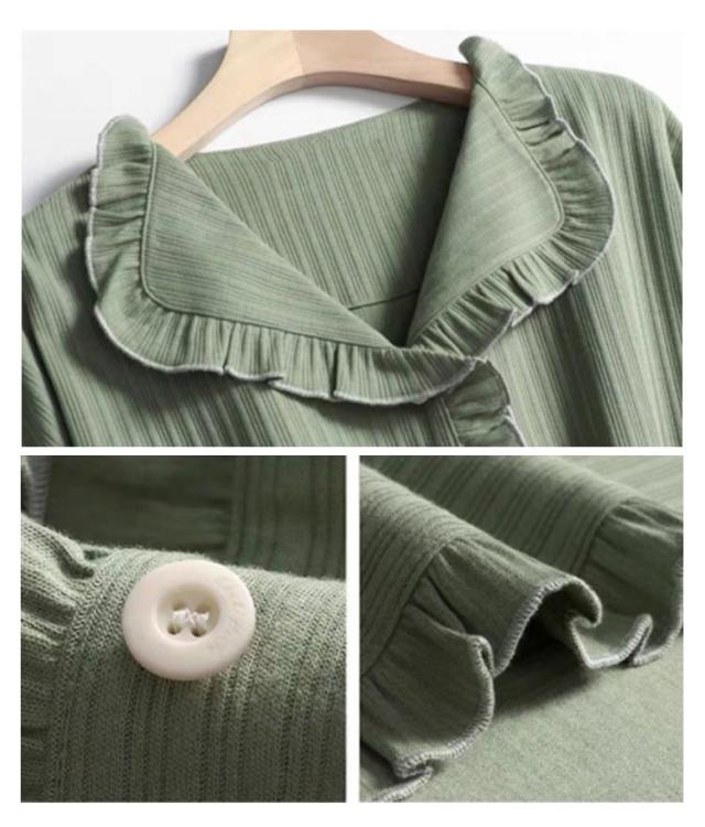 | 肌に直接触れる綿100%のルームウエアセットです。 ほどよい伸縮性があるので着心地の良いパジャマです。 半袖を着るにはちょっと肌寒いなという時にオススメの長袖! パンツはルーズなパンツ、ウエストは紐ゴムが加工したなので、動きやすいパンツです。 フリルとギャザーデザインがポイント、どんな女性にも、女性本来可愛いさ、優しいさを演出。 ポケットもありますので、すごく便利なアイテムです。 ルームウエアはもちろん、 前開きタイプなので、哺乳中、産前産後の方にもおすすめです。 | |