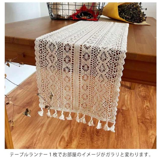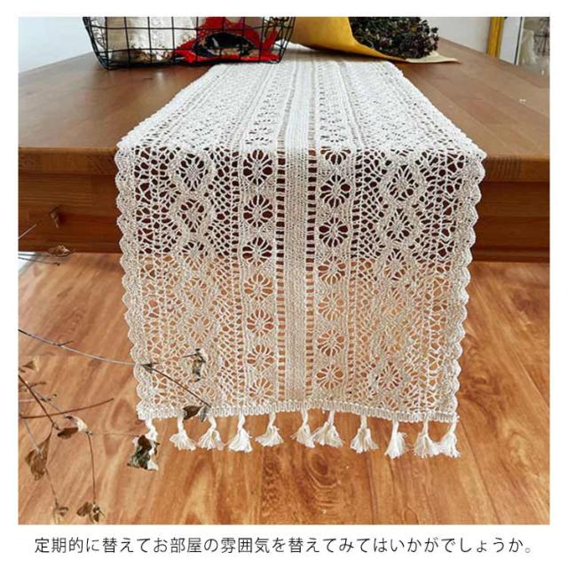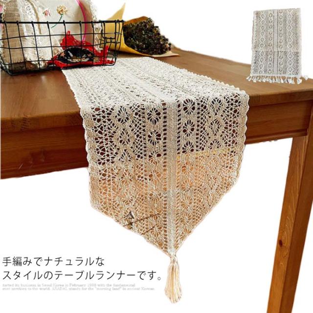 【送料無料】テーブルランナー 25*175cm 25*150cm テーブルセンター リバーシブル タッセル 食卓 編み物 綿 クロス 食卓飾り 断熱 おしゃれ かわいい モダン 和室 洋室 レース風 結婚式の宴会の装飾 手作り