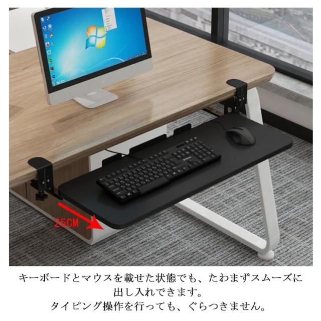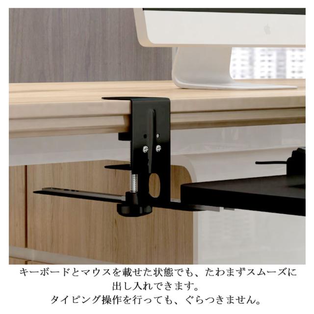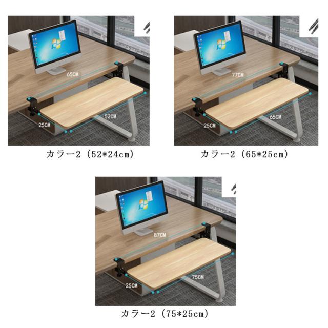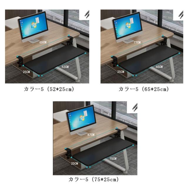 全5色・3サイズ・クランプ式!キーボードスライダー pcデスク 収納 後付け マウス キーボード キーボードトレイ 幅75cm キーボード台 アームレスト スライド式 幅65cm キーボードテーブル 幅52cm フルキーボード デスク設置 デスク 拡張 高さ調整可能 クランプ