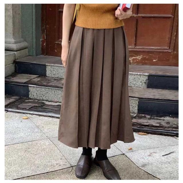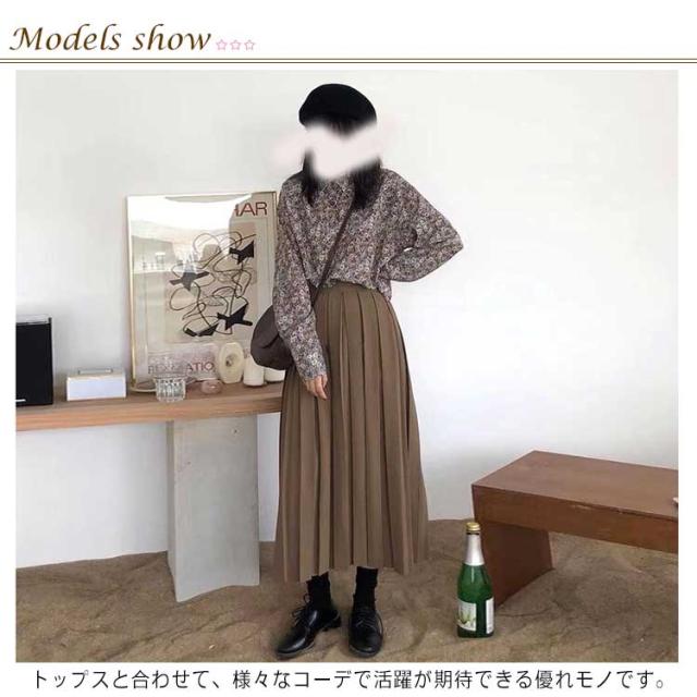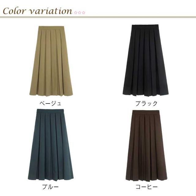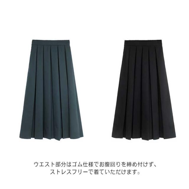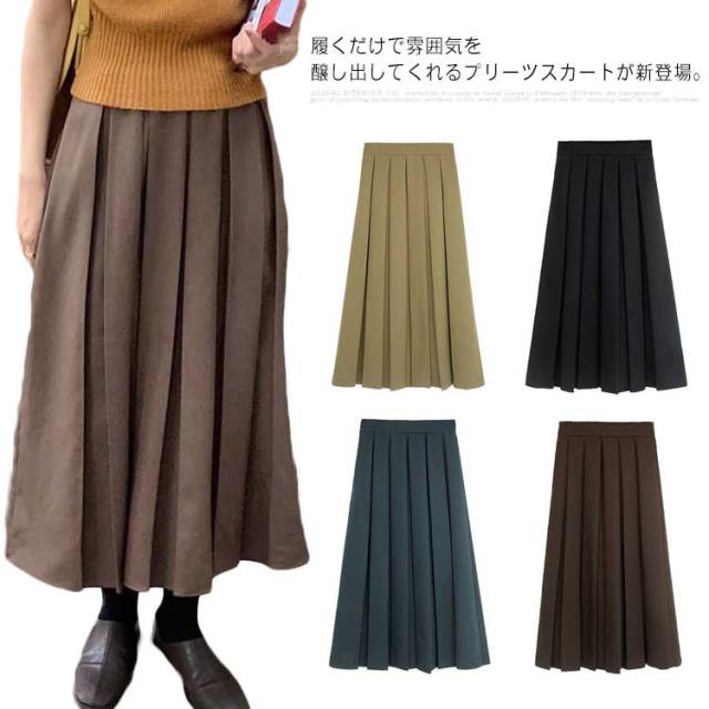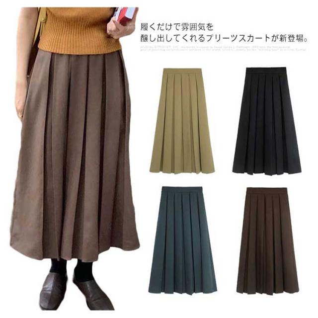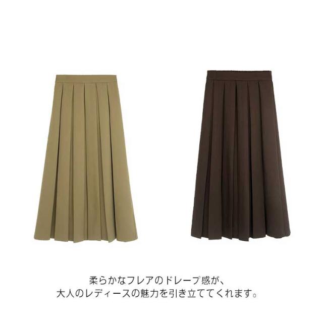 プリーツスカート レディース フレアスカート ロング丈 ボトムス ハイウエスト Aライン 着痩せ 体型カバー ウエストゴム 春秋 お洒落 無地 キレイめ カジュアル 普段着 通勤