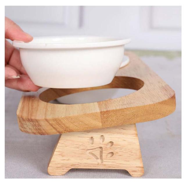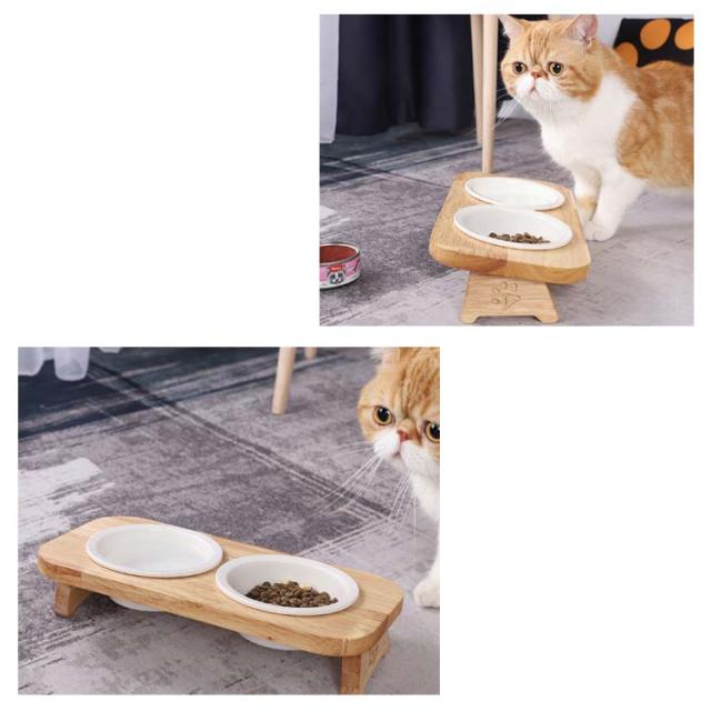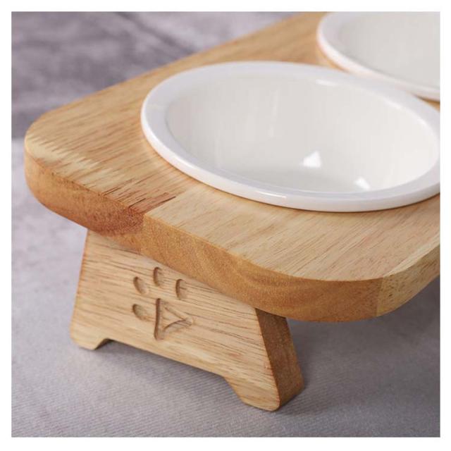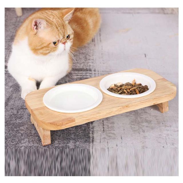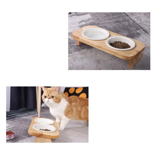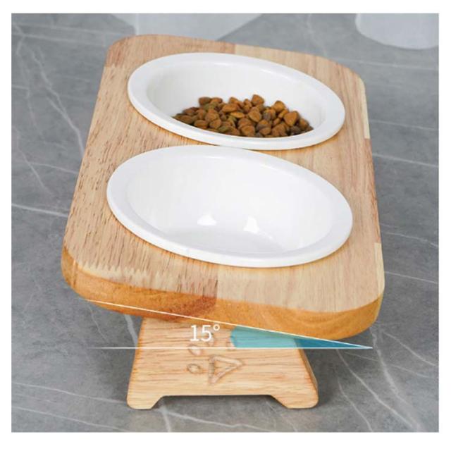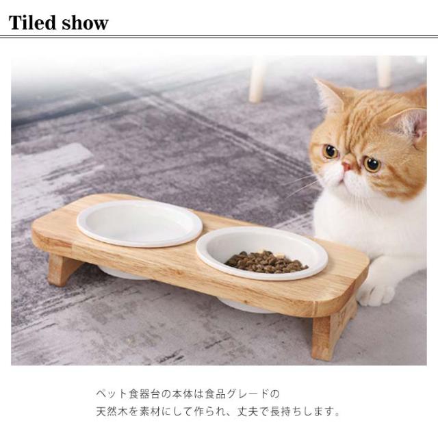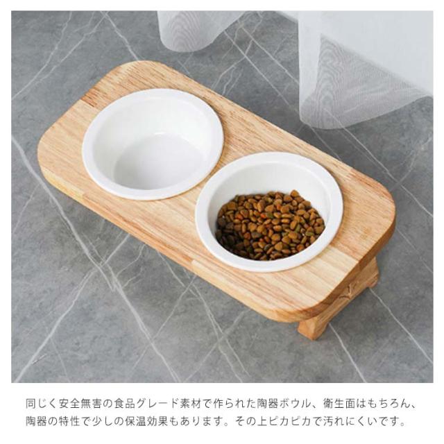 ペット食器台 食器テーブル 陶器 木製 ダブル 食べやすい 給餌器 犬 猫 食器台 フードボウル スタンド 餌入れ お水入れ 傾斜 スタンド フードボール 取り外し お皿付き 傾斜 可愛い ペットボウル ご飯台 猫用 小型犬