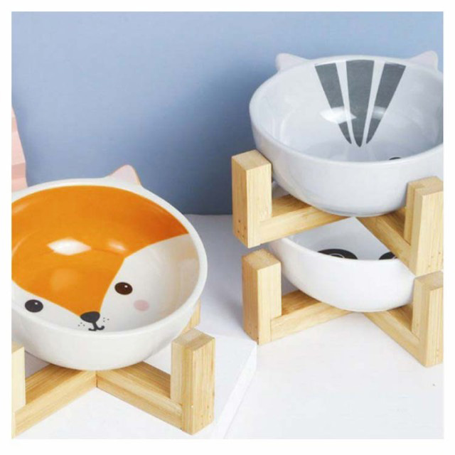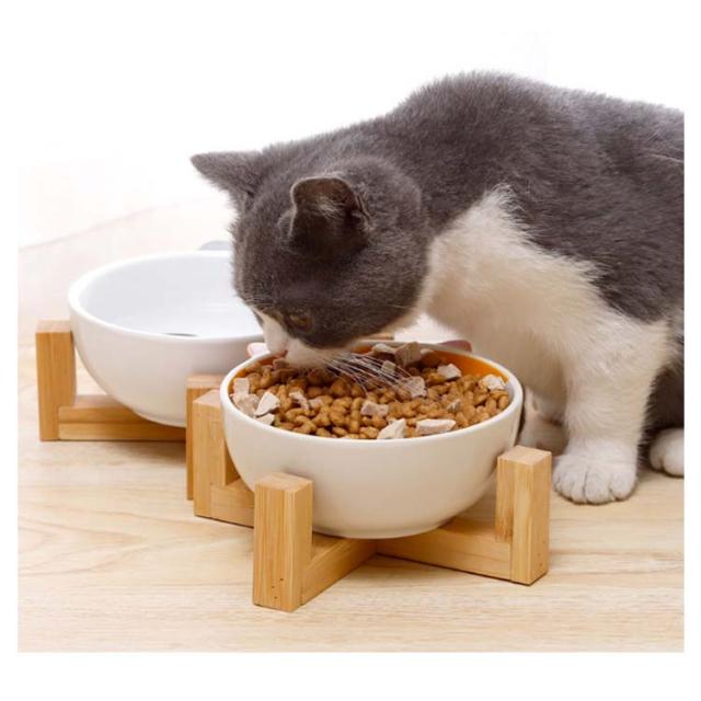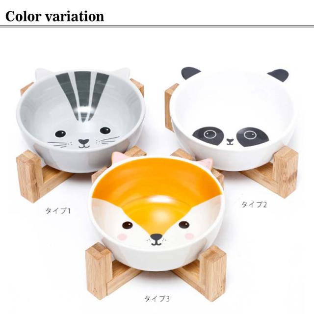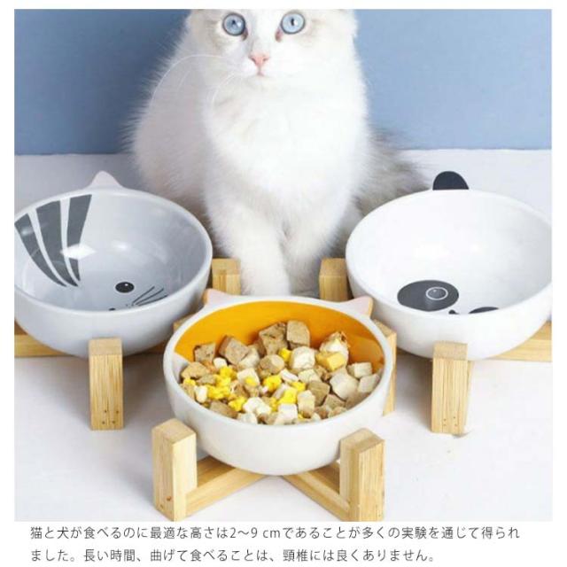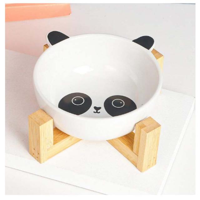 猫 ペット食器台 木製スタンド付き 北欧 陶器 テーブル 脚付き 高さ 食べやすい 皿 餌入れ 陶器 セラミック フードボウル ペット 食器 お水入れ 猫ボウル 犬 セット フードボール 給水 給食器 動物 パンダ柄 お皿 シンプル