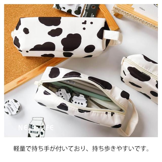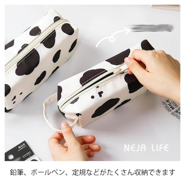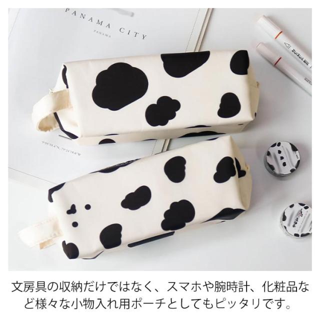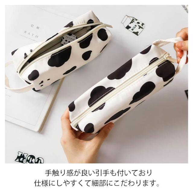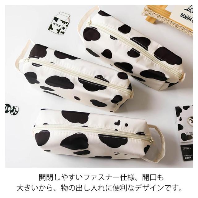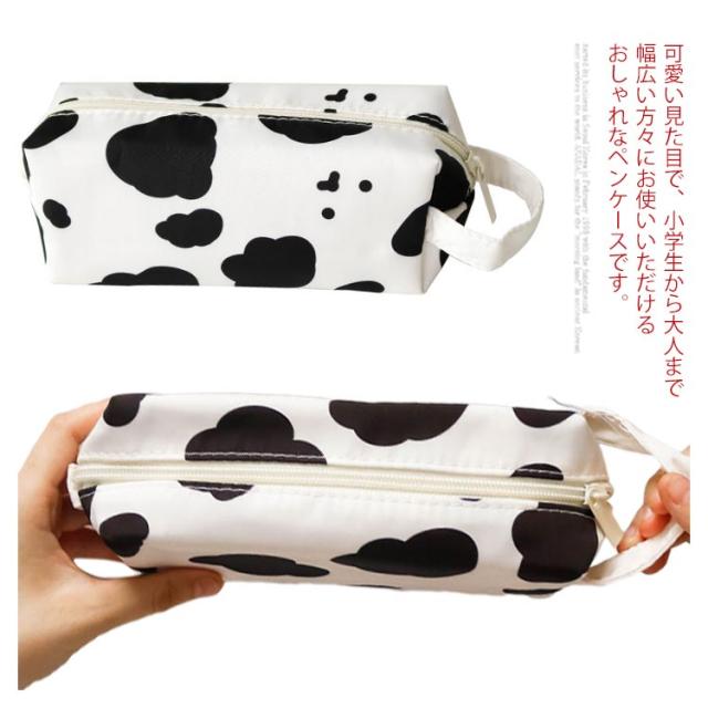 送料無料 ペンケース ペンポーチ おしゃれ 牛柄 大容量 高校生 可愛い シンプル 韓国 筆箱 小学生 大人 海外 収納 化粧ポーチ 中学生 大学生 コンパクト 女子 かわいい オシャレ 白 女の子 入学祝い 誕生日 ギフト プレゼント