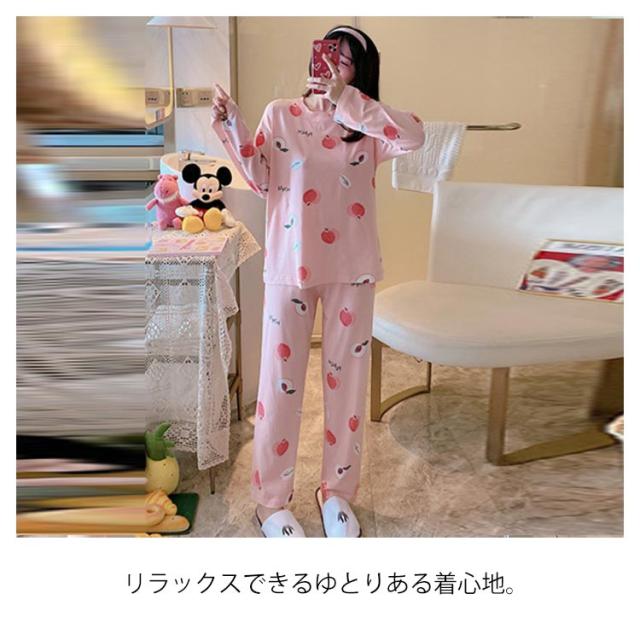 送料無料 ルームウェア レディース 上下セット もも柄 セットアップ かわいい 可愛い パジャマ 大きいサイズ パンツ 薄手 夏 秋 ピンク ギフト プレゼント