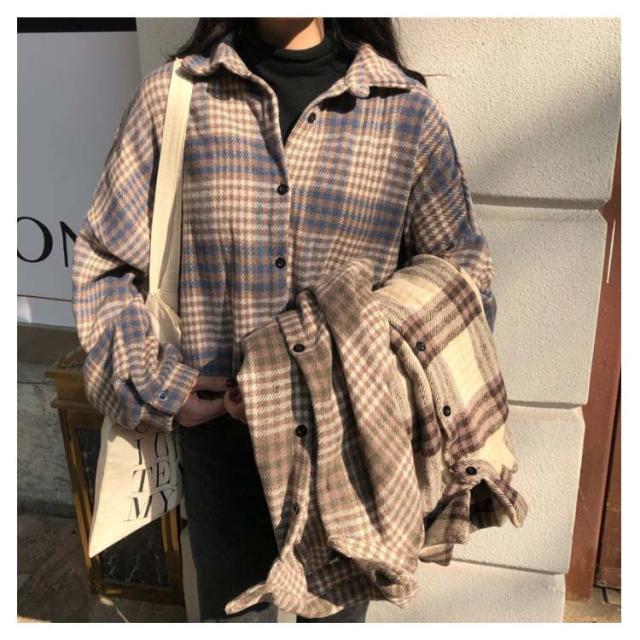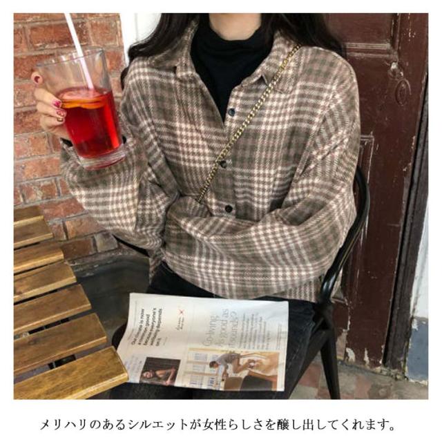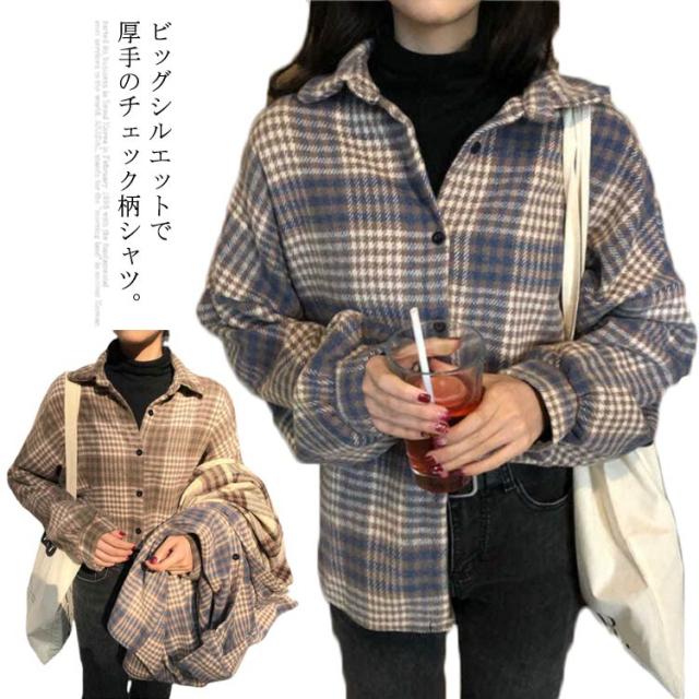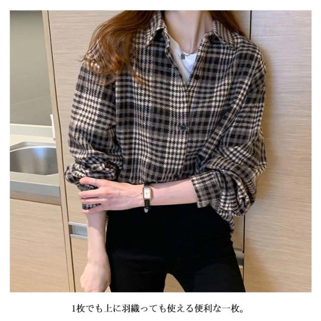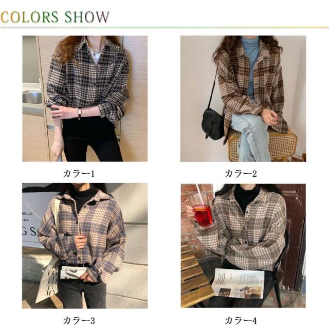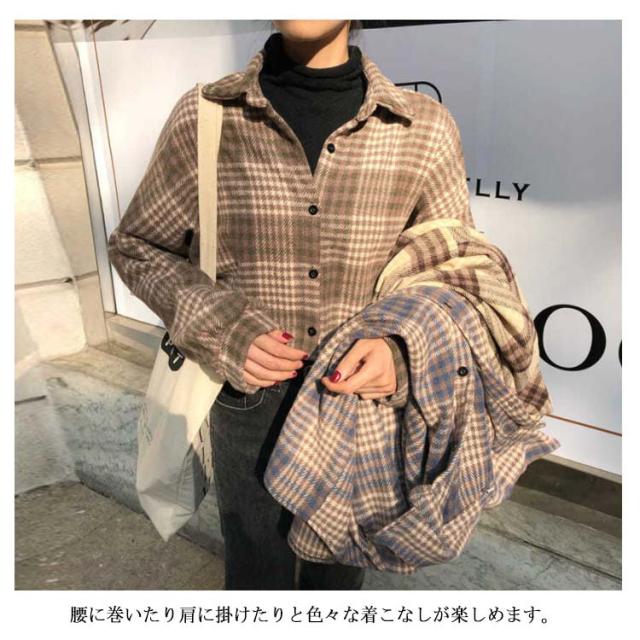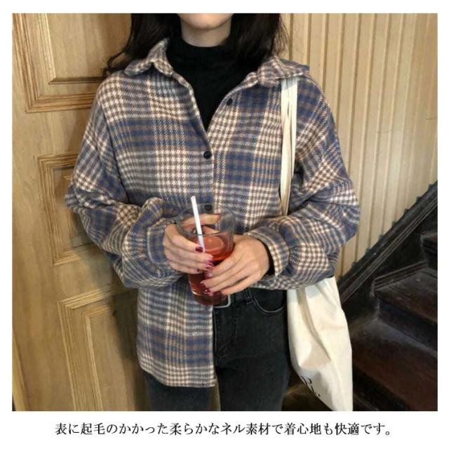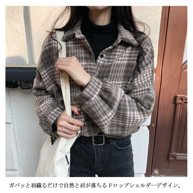 【送料無料】チェックシャツ ネルシャツ トップス チェック柄 ボタンシャツ 秋 冬 長袖 ドロップショルダー バルーンスリーブ 無地 シンプル レディース ジャケット ライトアウター シャツジャケット ブラウス 大きいサイズ ビッグシルエット オーバーサイズ