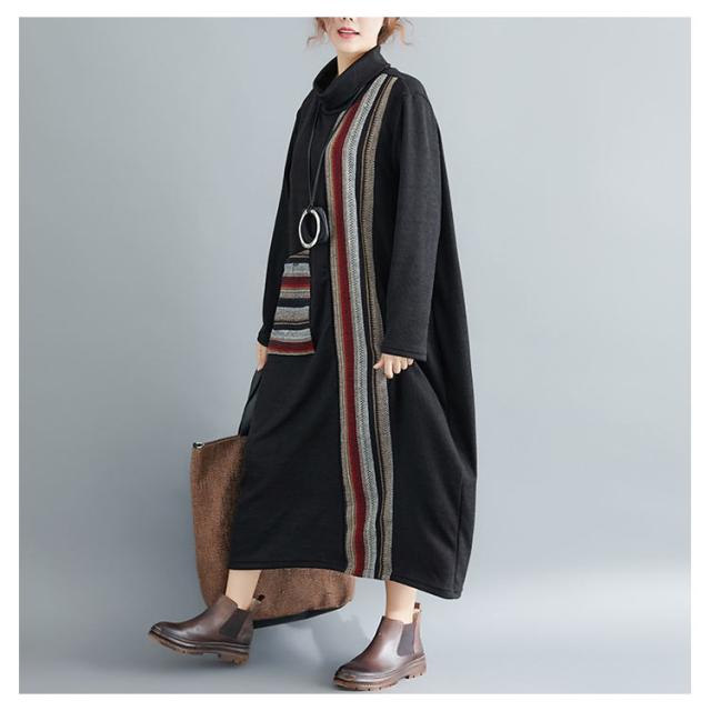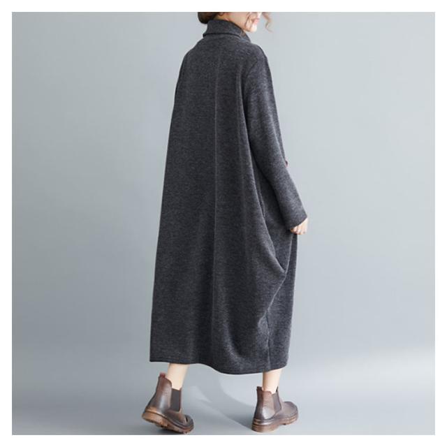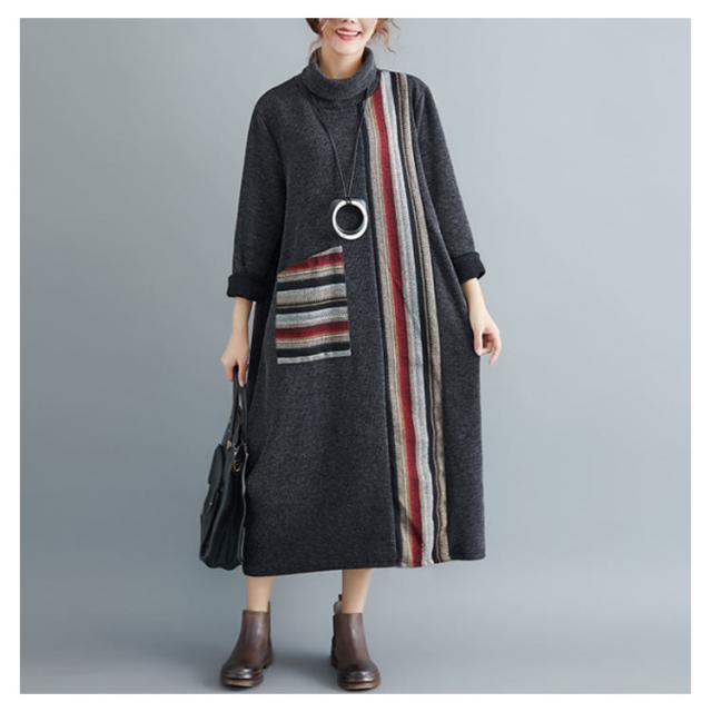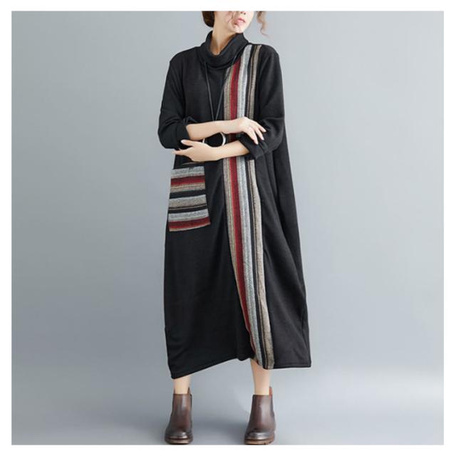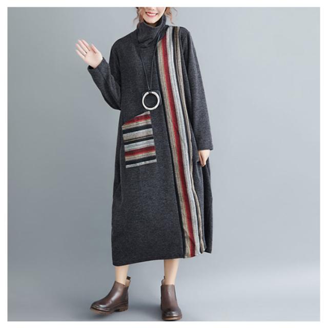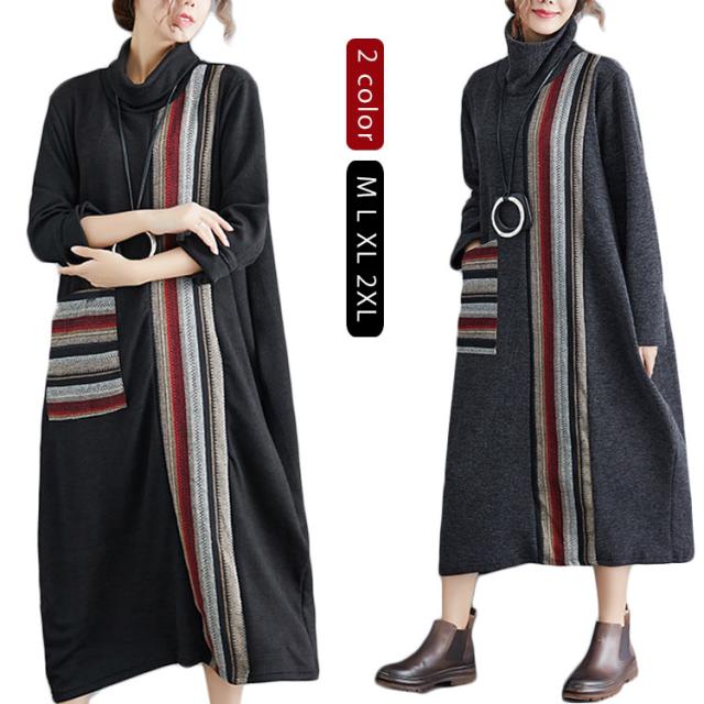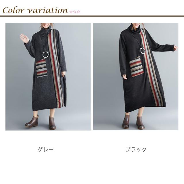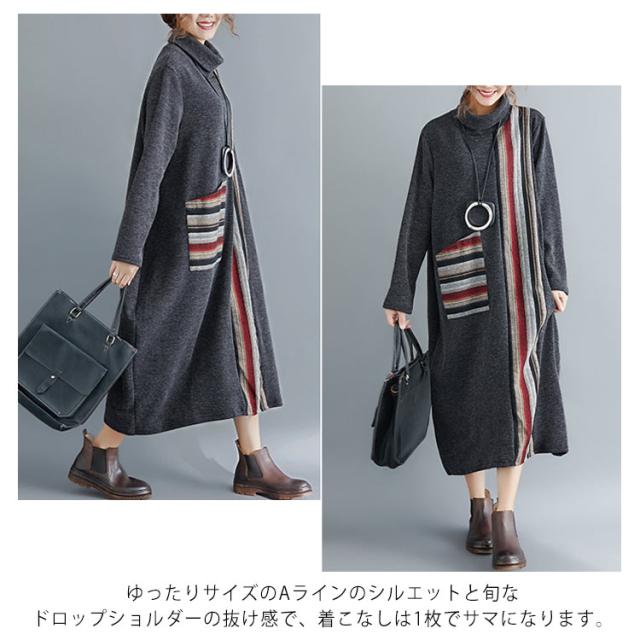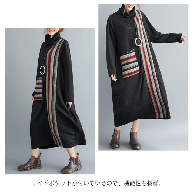 ロング ワンピース レディース 秋冬 切替 ワンピース マキシ丈 長袖 フレア 大ポケット ハイネック 長袖 トップス 秋冬 ワンピース 着痩せ 体型カバー 大人シンプルき ゆったり ワンピ 着痩せ お呼ばれ ロング丈 春 秋