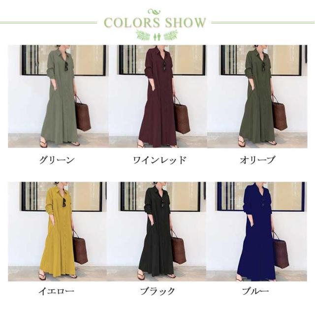 ブラウス レディース リネン シャツ 長袖 トップス ロングシャツ オフィス Vネック 無地 エレガント フェミニン グリーン ワインレッド オリーブ イエロー ブラック ブルー