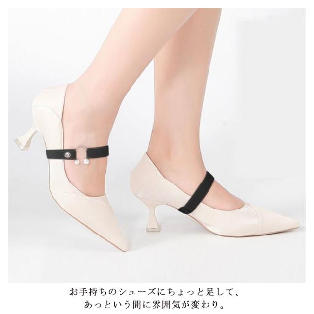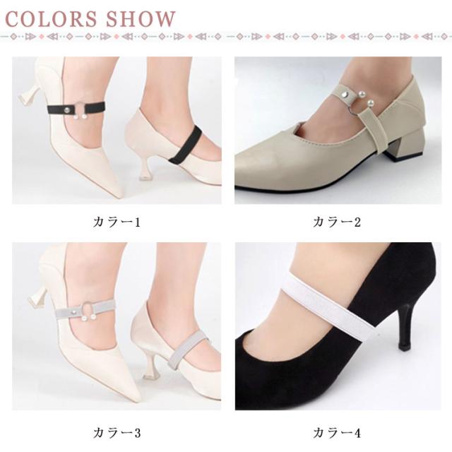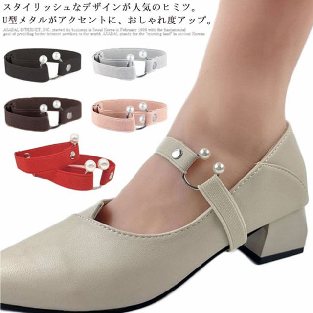 | スタイリッシュなデザインが人気のヒミツ。 U型メタルがアクセントに、おしゃれ度アップ。 幅広いゴムで、痛くない快適。 お手持ちのシューズにちょっと足して、あっという間に雰囲気が変わり。 カカトのパカパカ脱げにもバッチリ! パールデザインなので、普段使いはもちろん、デートや結婚式など色々な場面で大活躍。 | |