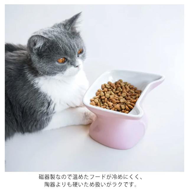 | 足付だから、頭と喉を下向きに下げた状態で食事をしなくて済みます。 高さのある食器で食べることによりフードの逆流を減らし、負担が軽減されます(一気食いによる嘔吐を軽減) 内側の縁に適度な丸みと厚みをつけることにより、食べにくさのストレスを軽減。 また重さがあるので動きにくく安定しています。 磁器製なので温めたフードが冷めにくく、陶器よりも硬いため扱いがラクです。 電子レンジ、食洗機対応。 | |